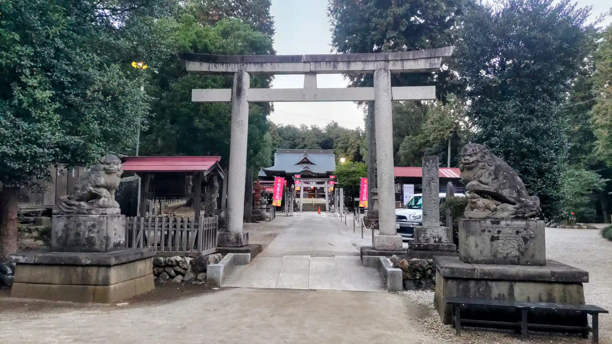 拝殿の裏手から入ると参道右手に駐車できます。