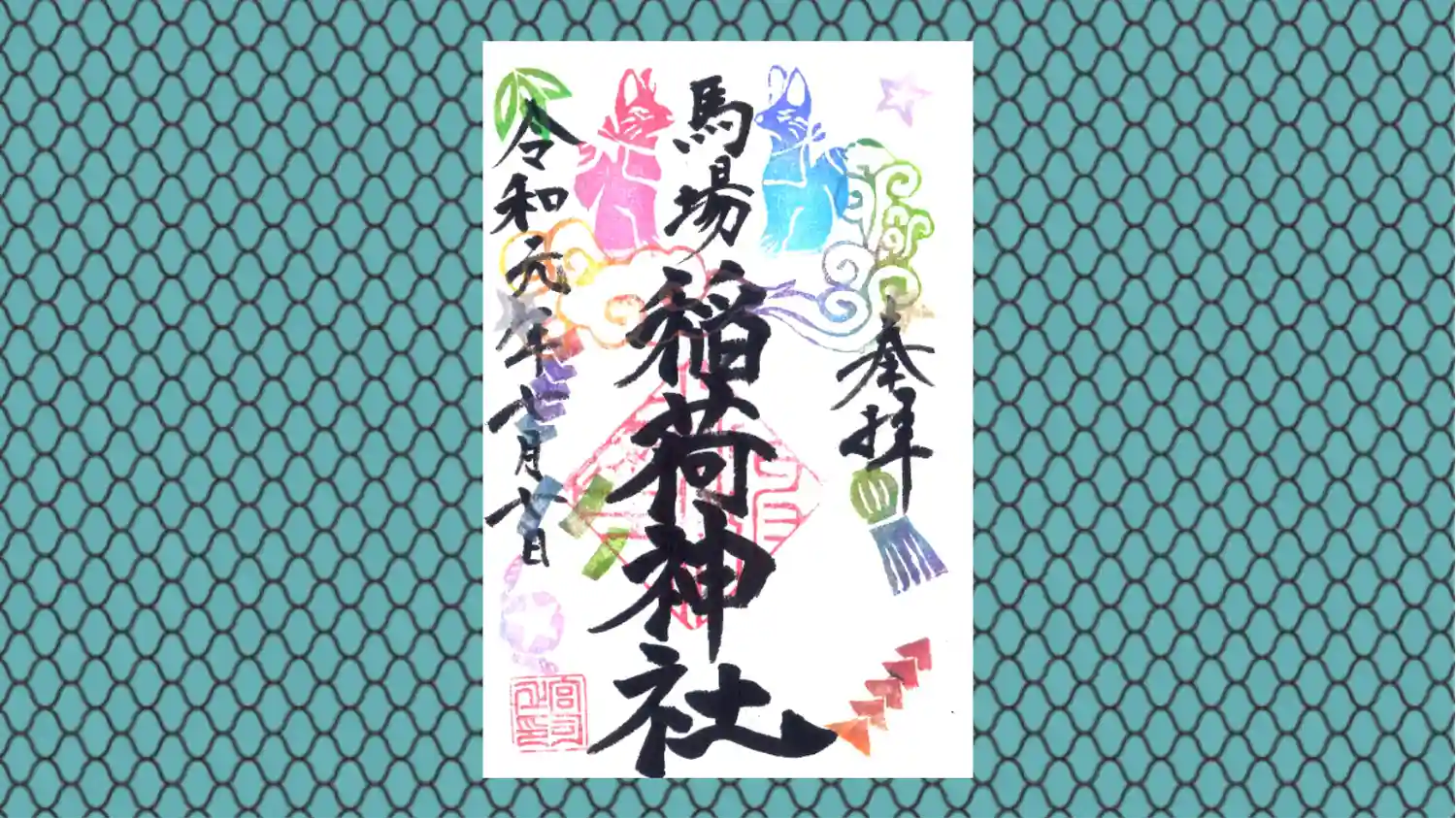 境内社稲荷神社の御朱印のうち九尾の狐デザインです。