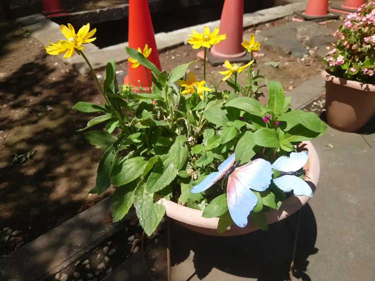 植木鉢の花には蝶々