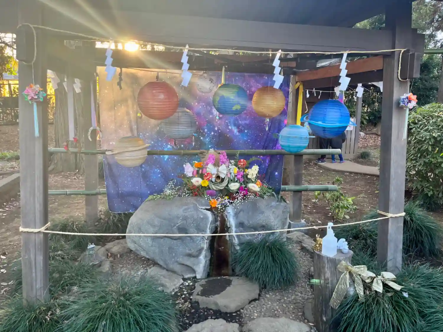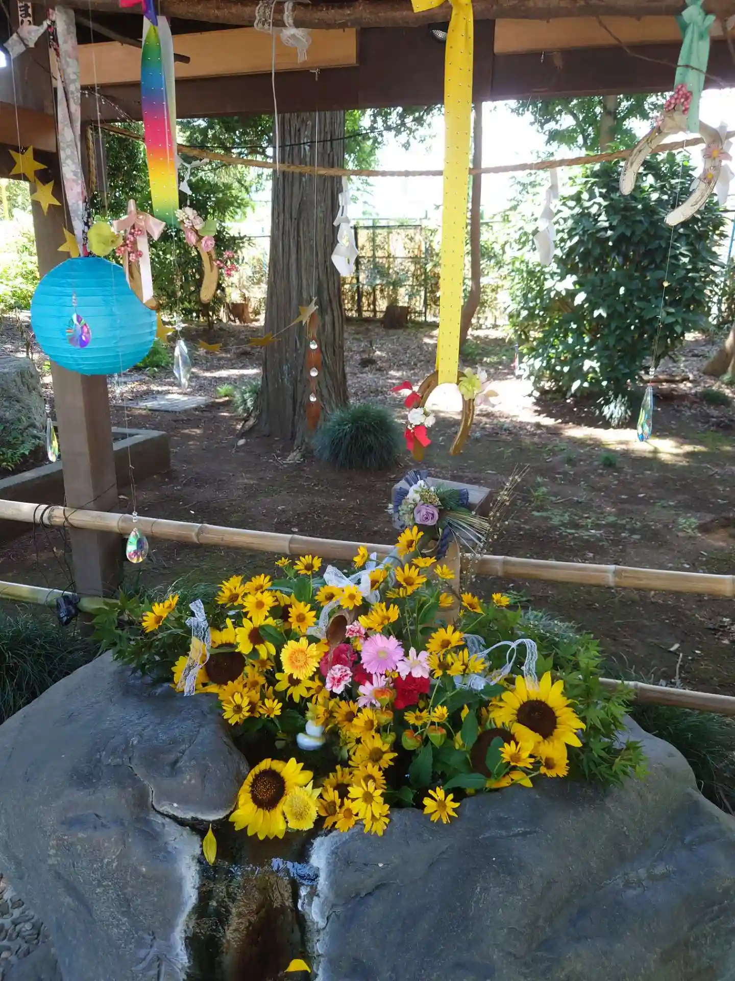 宇宙の花手水🌼太陽の光で神々しい☀️