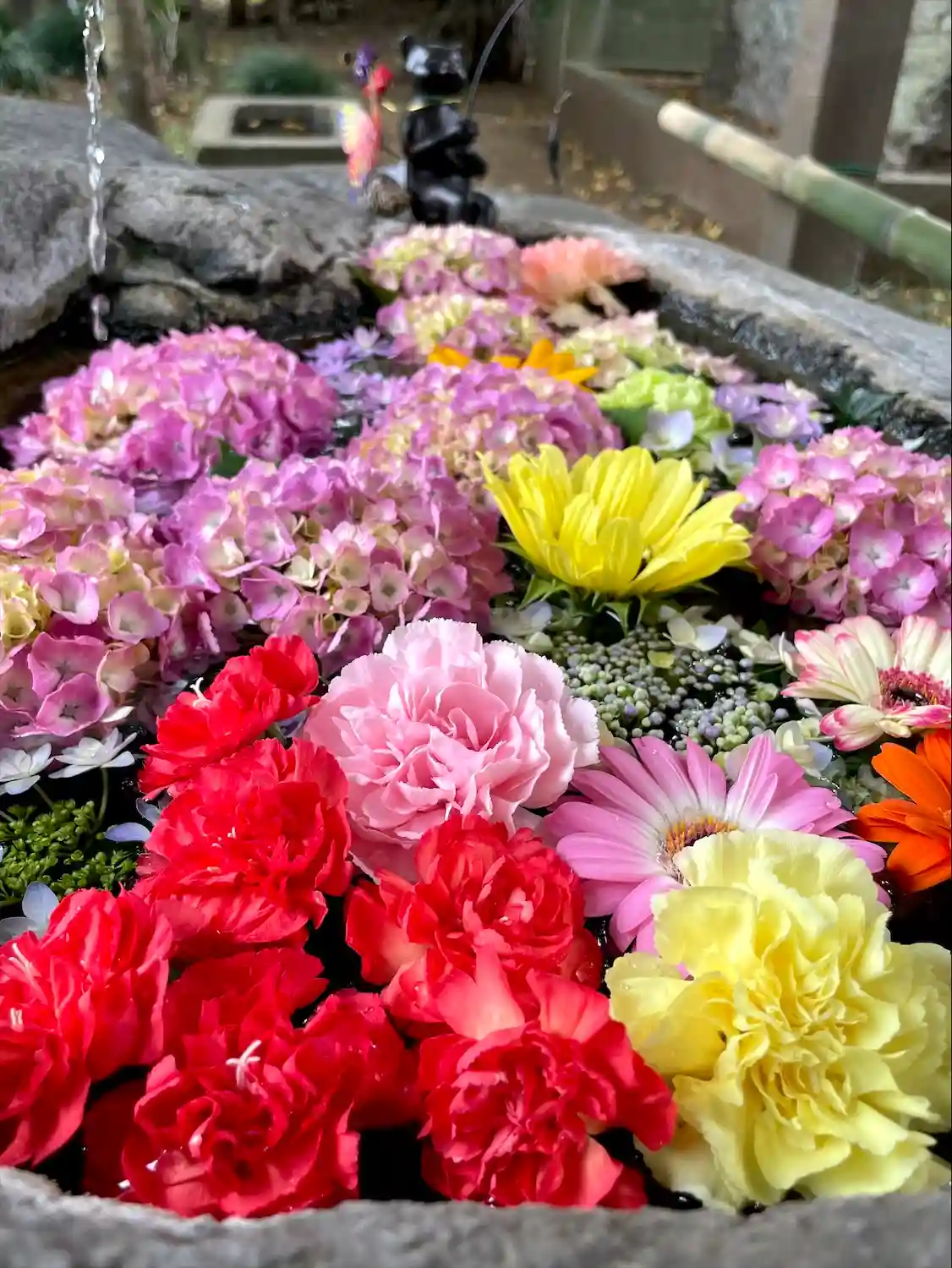デコレーションされた花手水