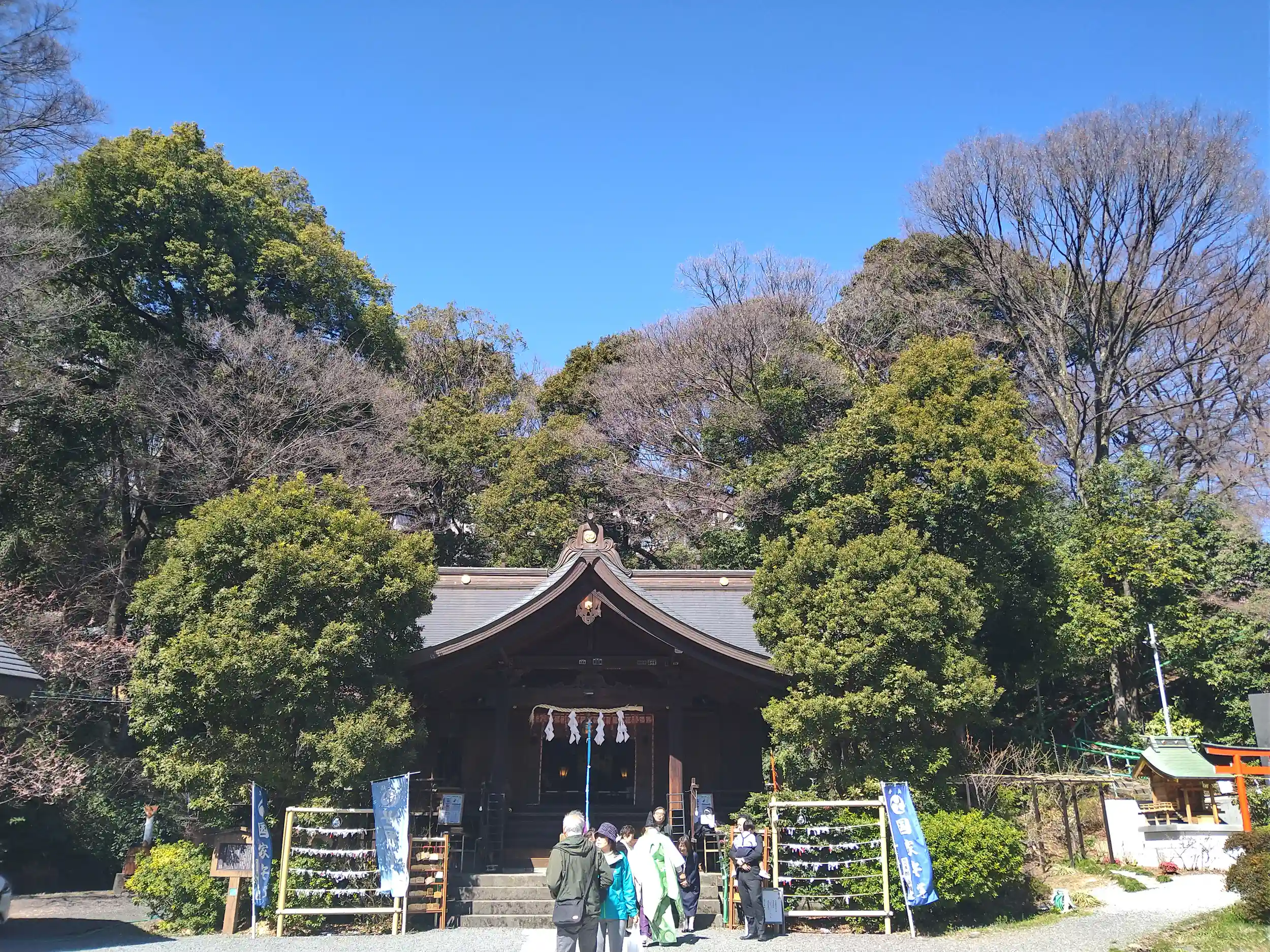 遠くから、拝殿を…