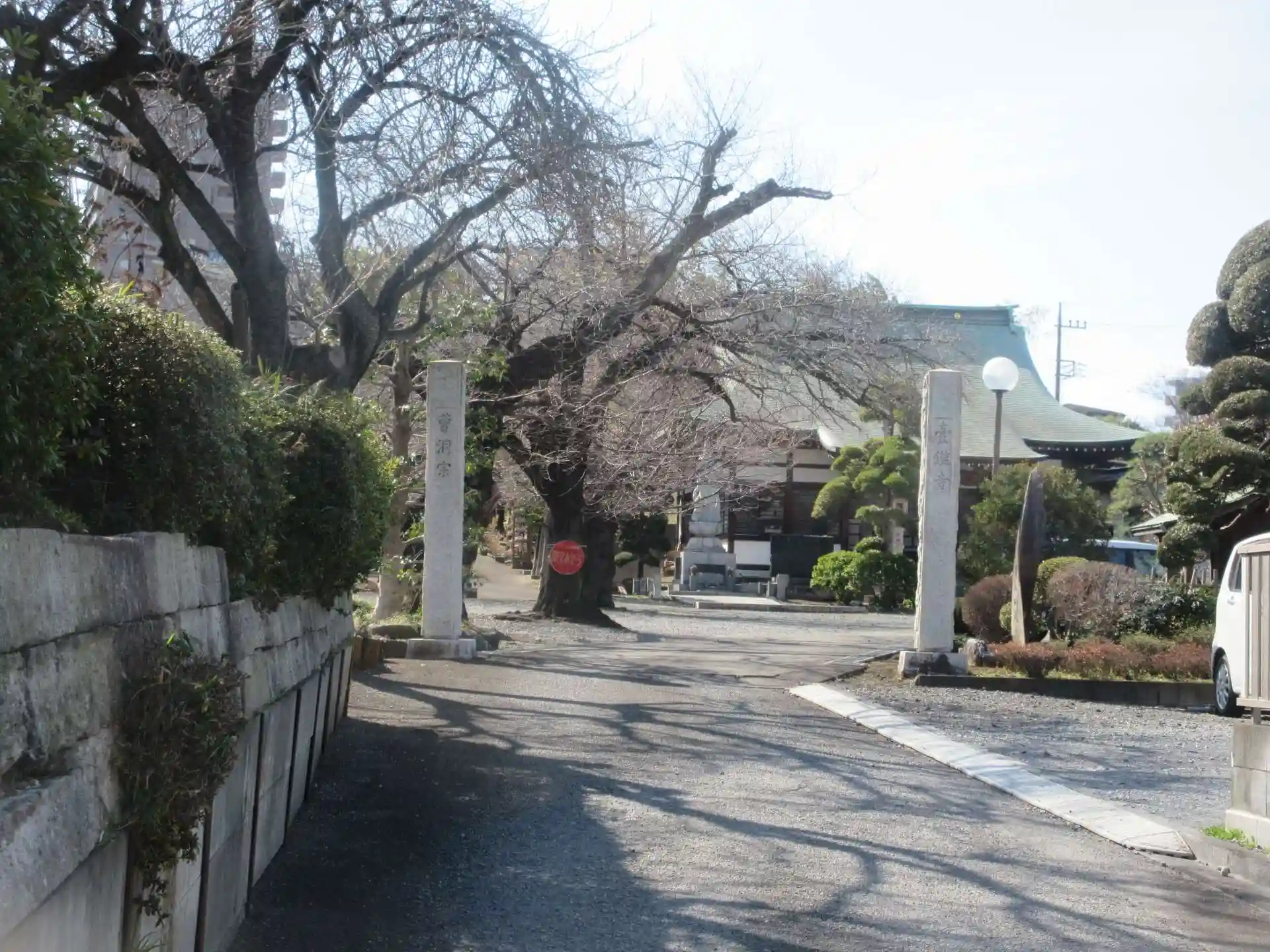 広い墓地に向かう途中の桜が綺麗で見とれました。