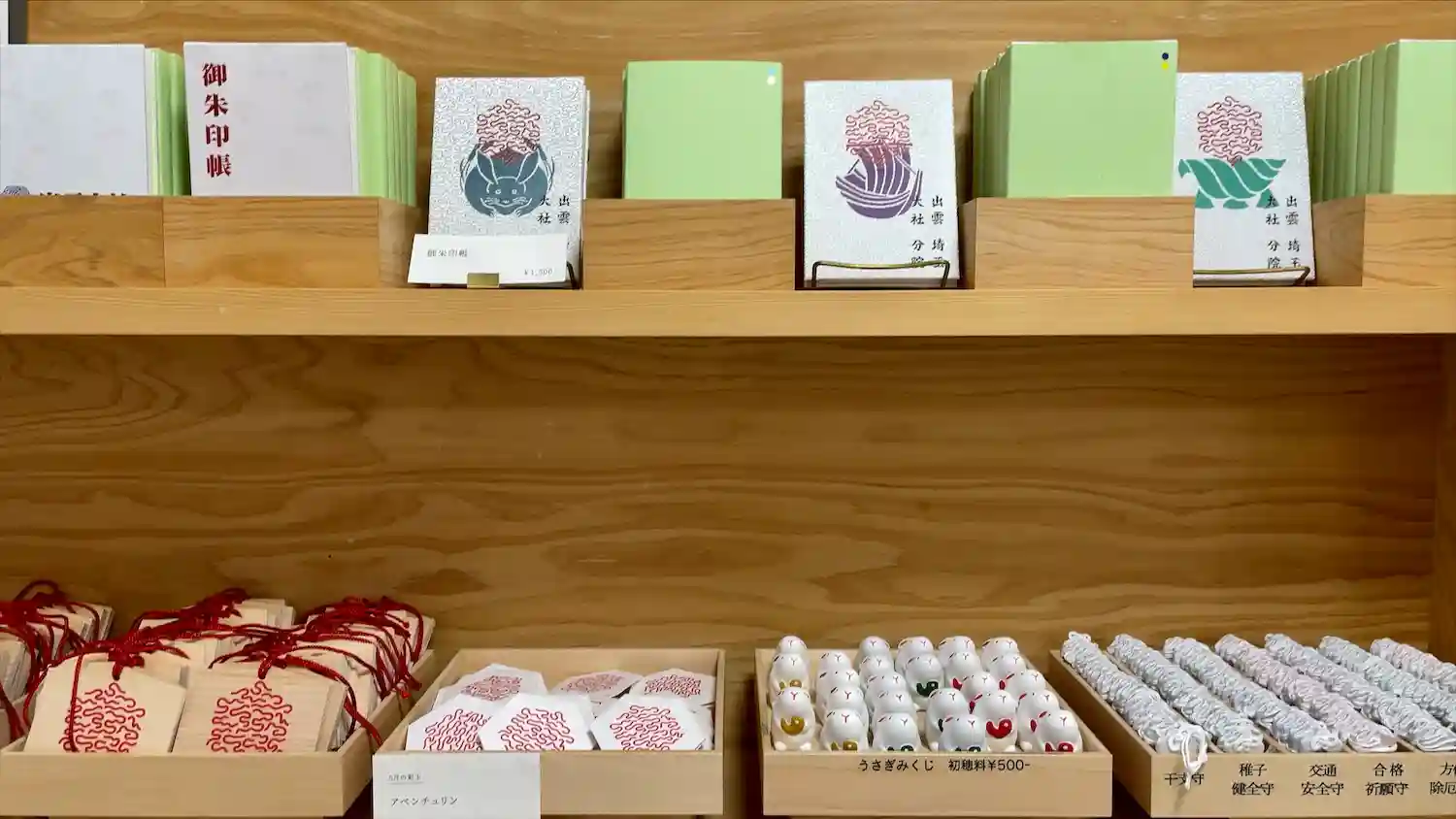 中にはオシャレな棚にてお守り、御札、おみくじなどが並んでいました。