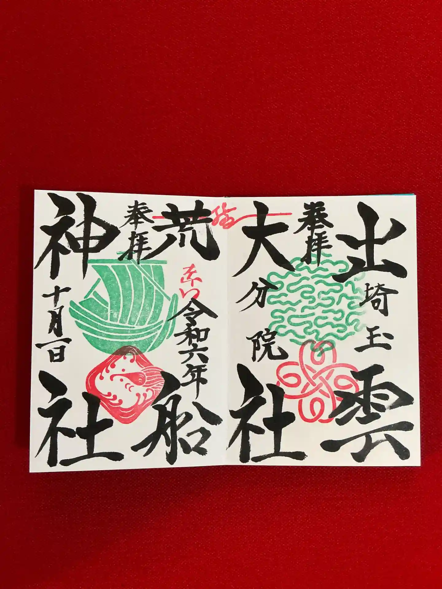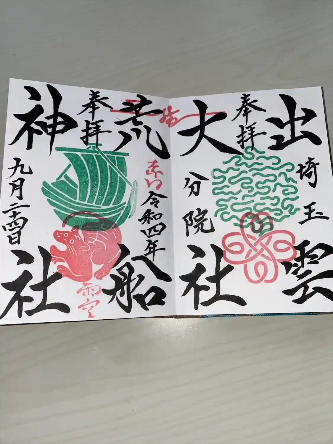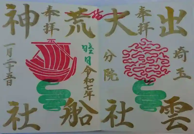 出雲大社埼玉分院さんですが、御朱印は荒船神社さんです、朱印が帆船で銀色の御朱印紙🙏