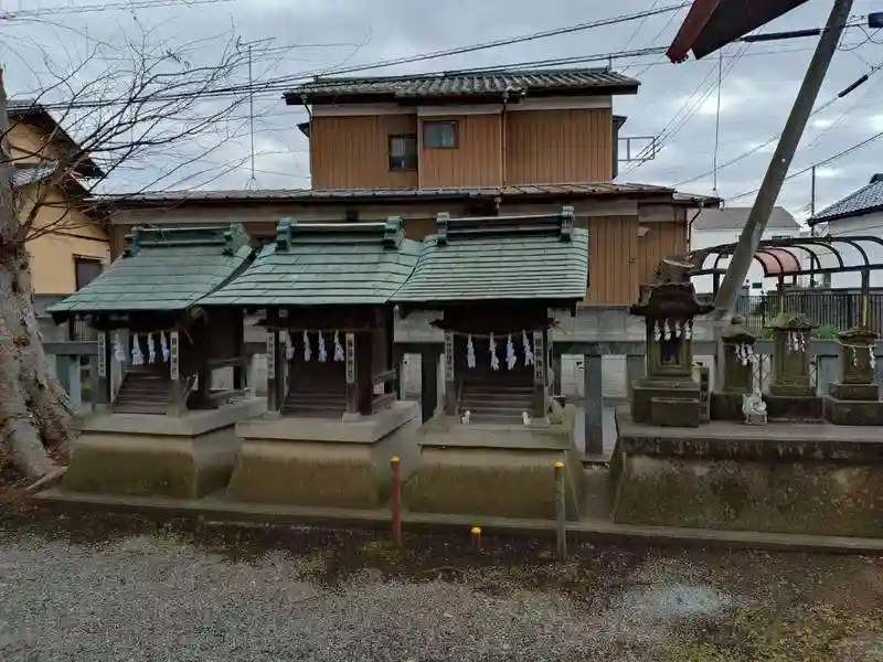 境内社 稲荷神社(左から二つ目から安政五年(1858)、明治十三年(1880)昭和七年(1932))