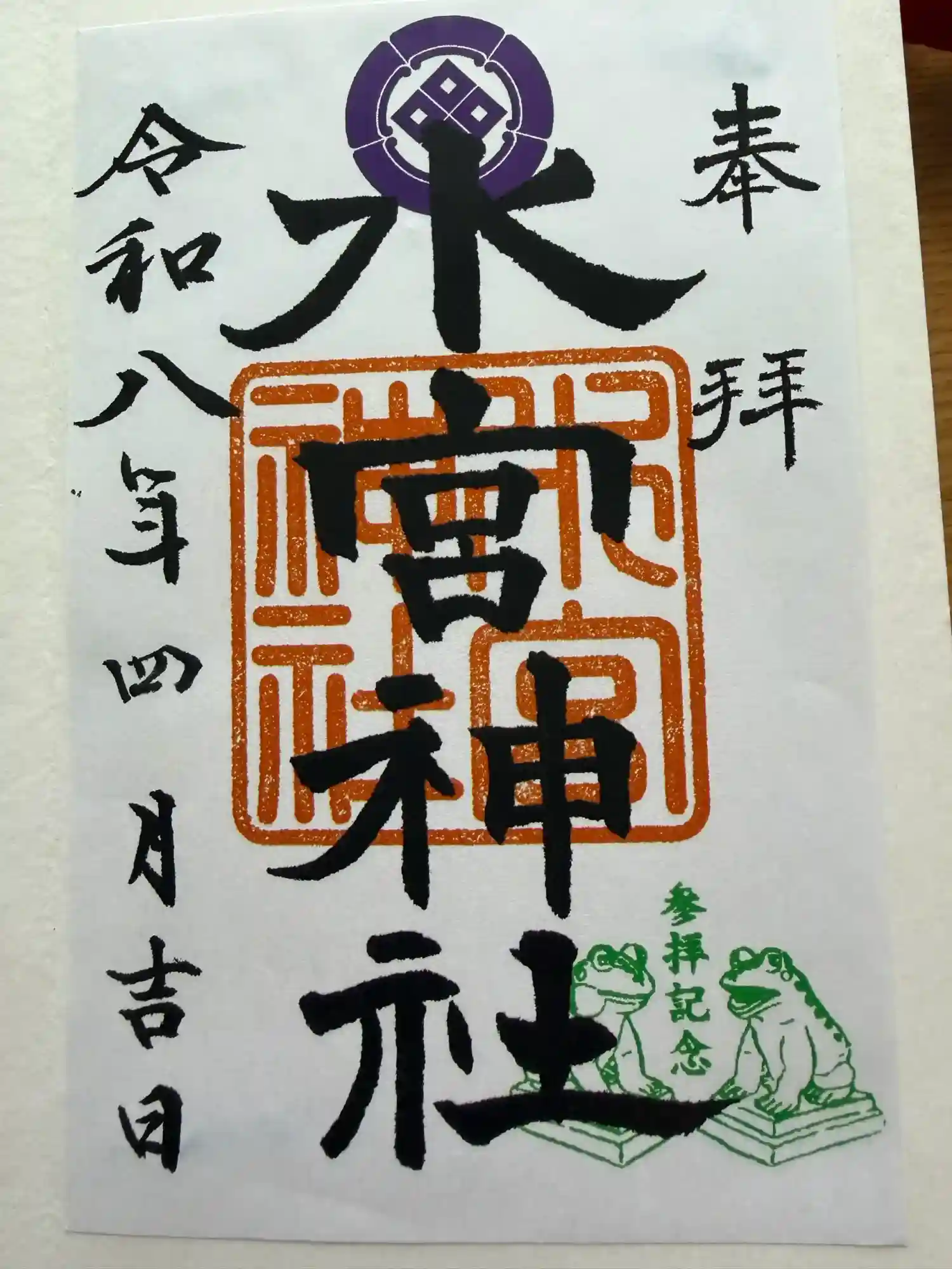 仕事の帰りに参拝しました。カエルが祀られてました。宮司さんが出かけてしまったので書置きの御朱印をい…