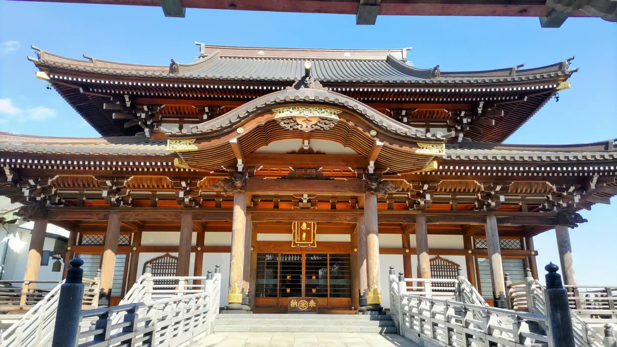 道を挟んでさらに左手に近代的な感じの観音堂があり、奥の方に立派な山門と本堂(御本尊は不動明王)がありました。