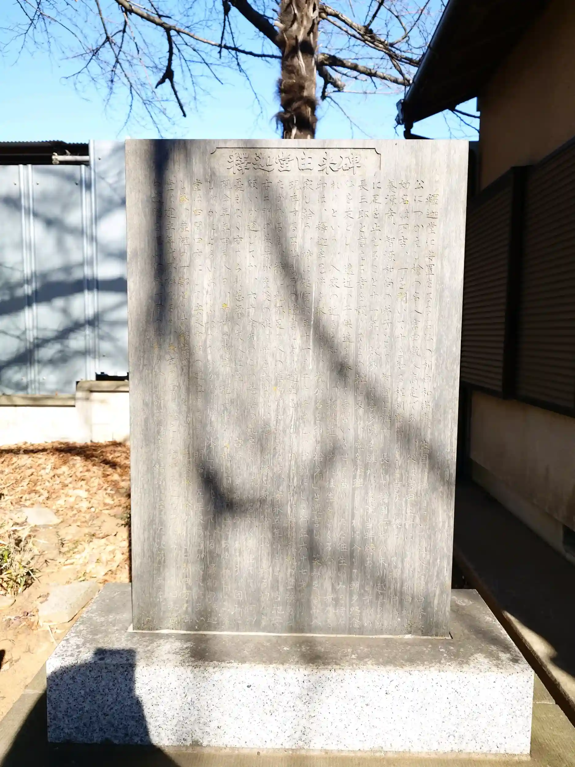 川越喜多院で僧広坊に仕えた利白和尚の墓石である釈迦如来像が安置されている御堂です。昭和30年に「利白和尚霊験記」という釈迦堂の由来記が発見されています。