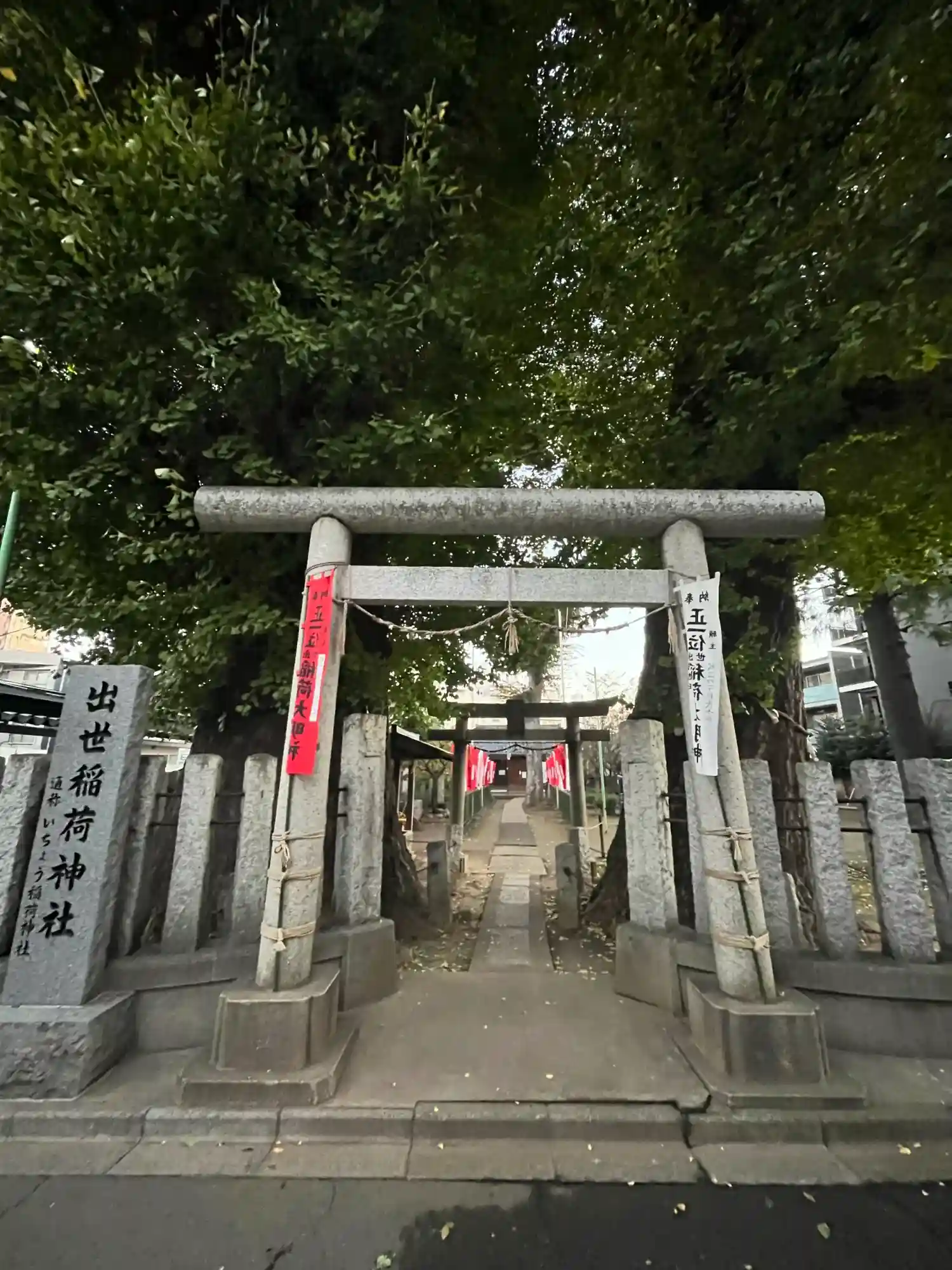 この出世稲荷神社には、鳥居と共に神社を守る大きなイチョウの木があります。