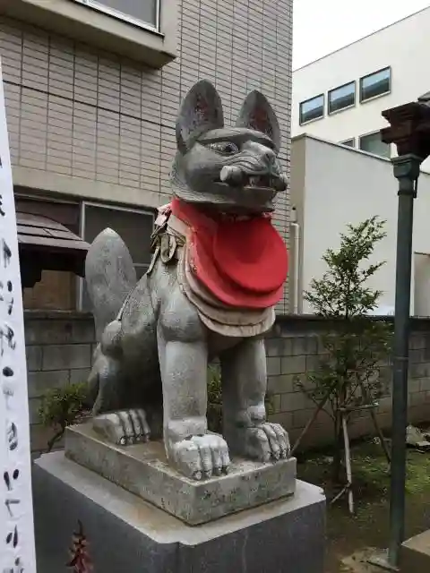 拝殿前の狛狐はがっしりとした ちょっと珍しい形をしています。