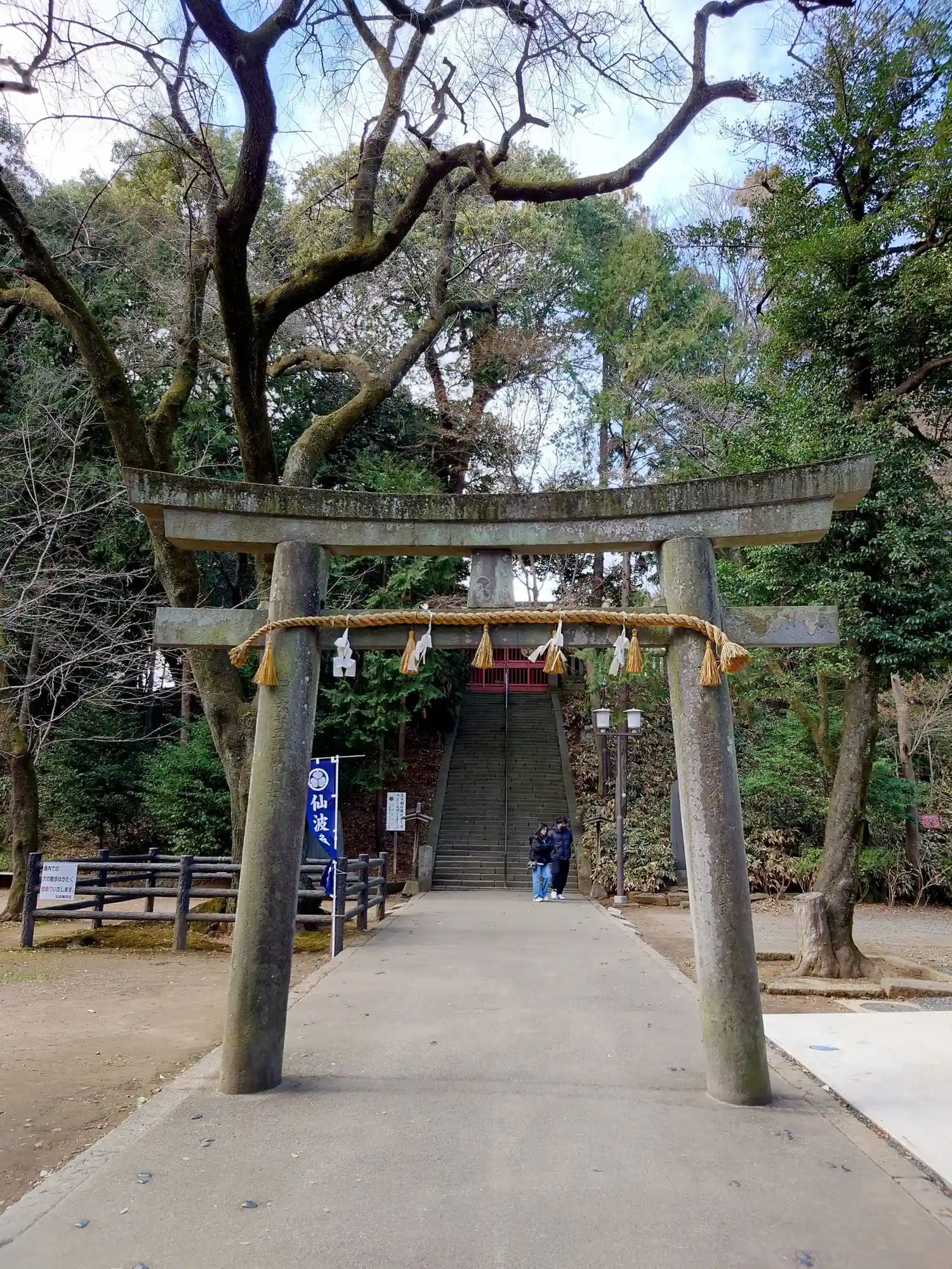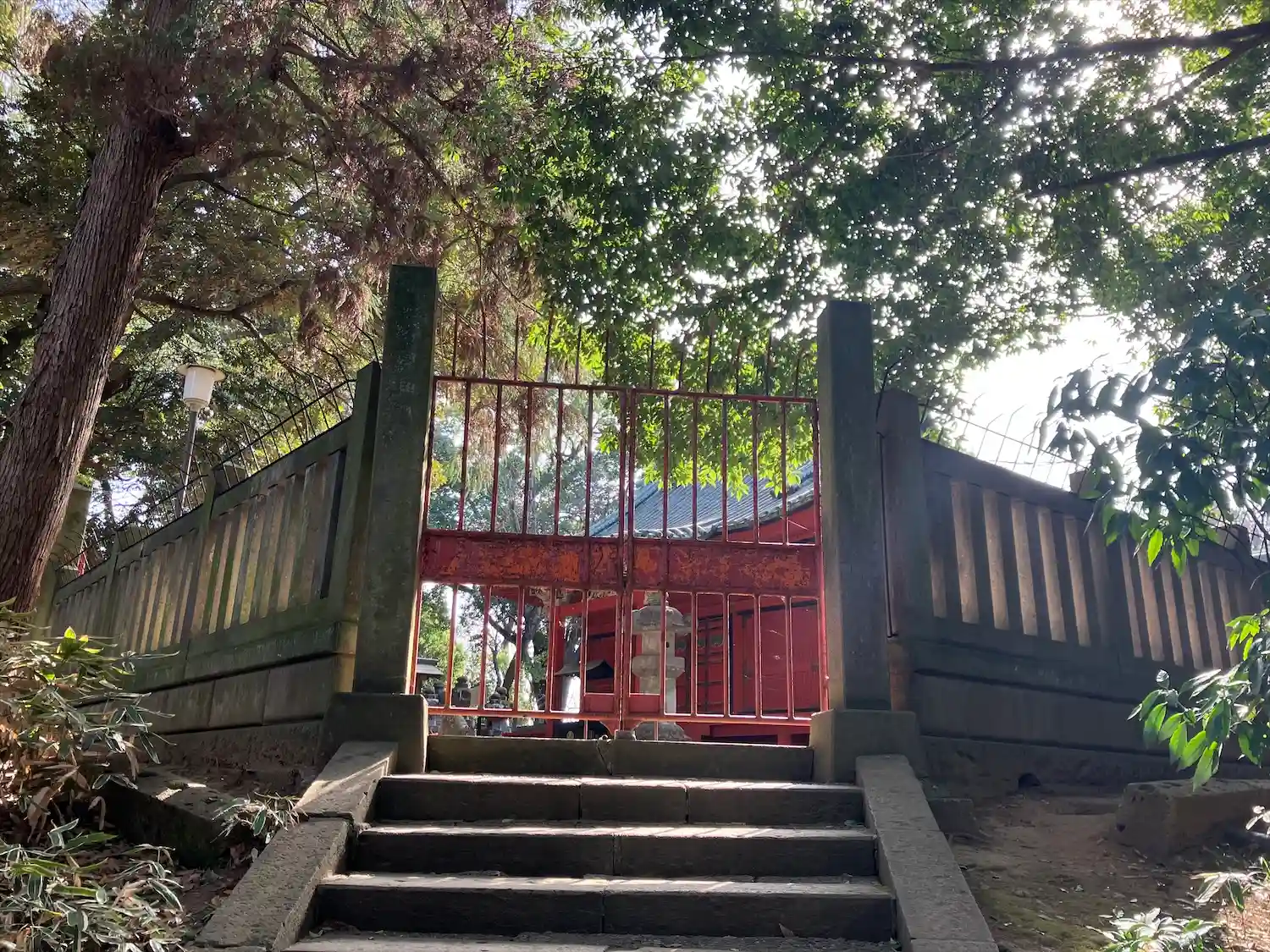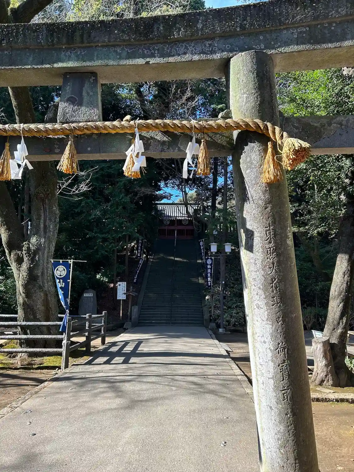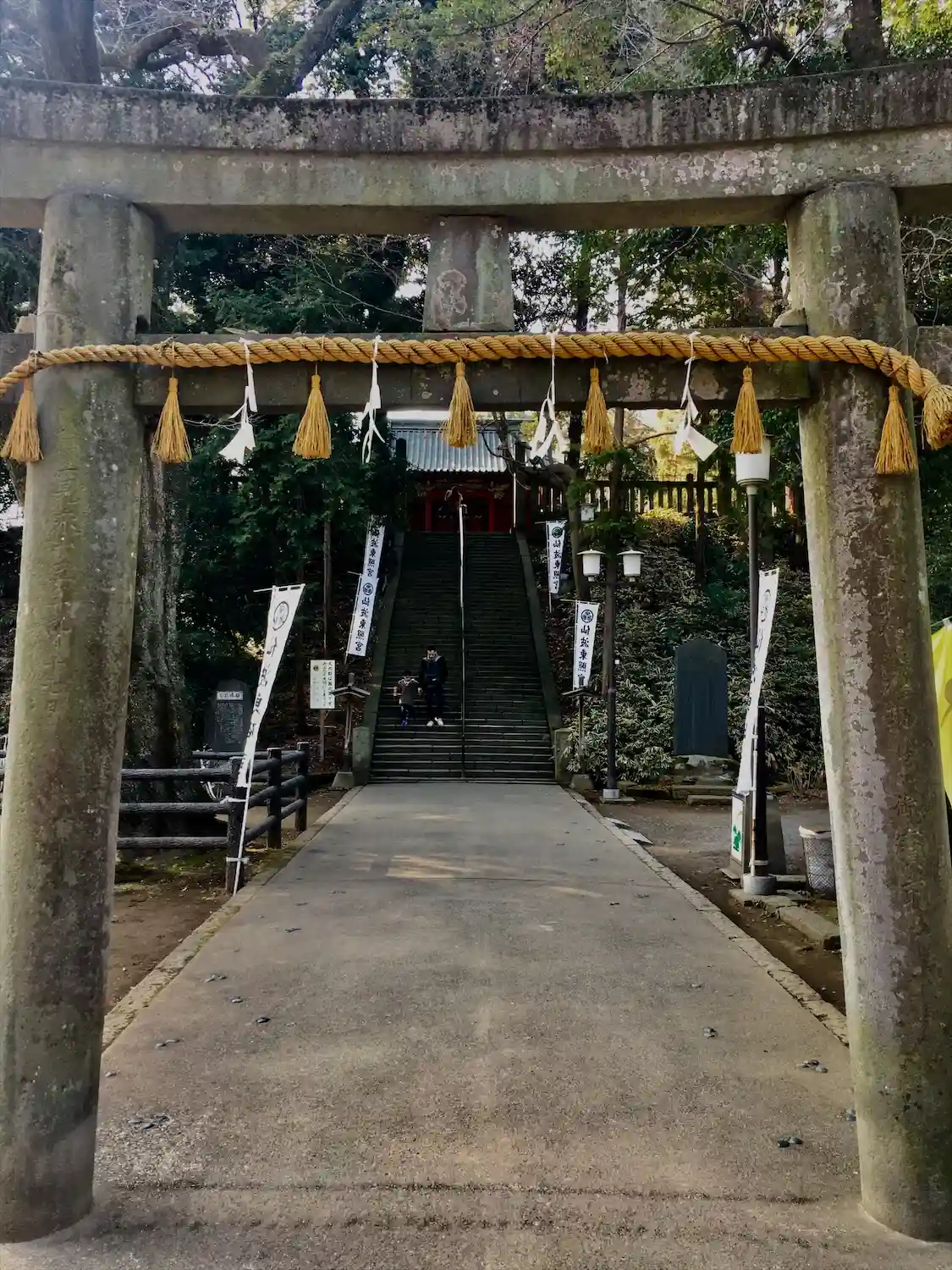 随身門、第一鳥居を抜けると階段。階段を登ると埼玉最古の狛犬が迎…