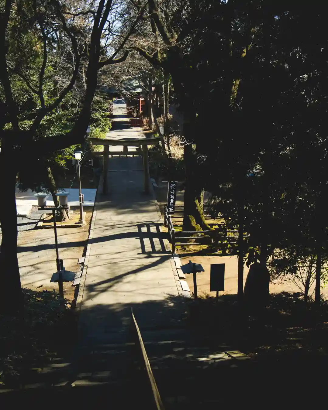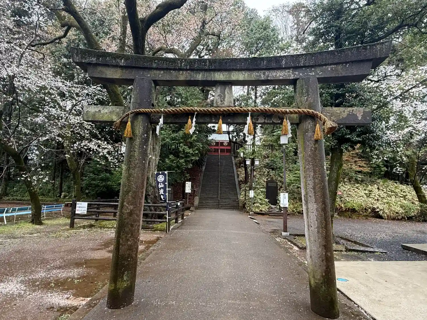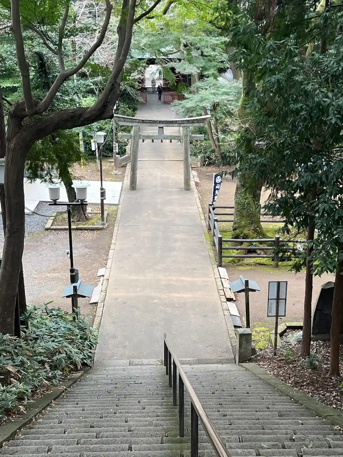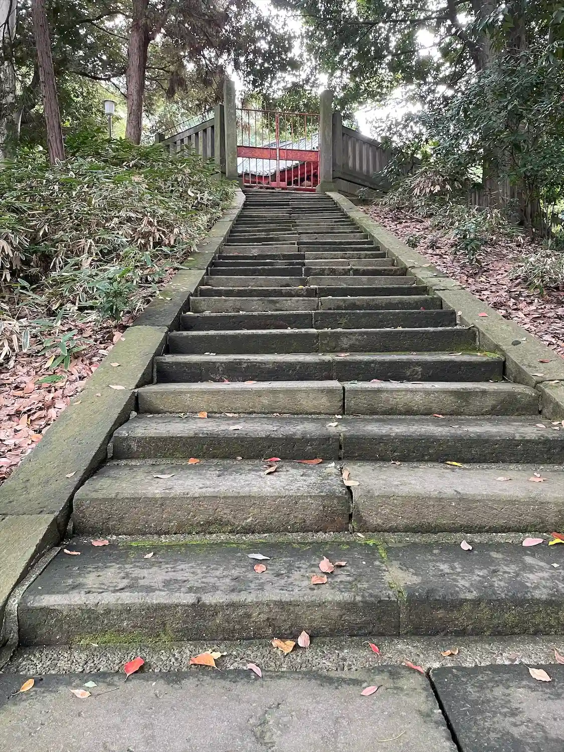 随身門、第一鳥居を抜けると階段。階段を登ると埼玉最古の狛犬が迎…