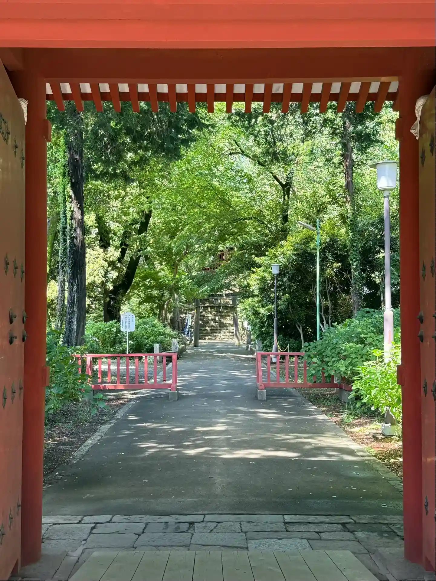 鮮やかな朱色の門の先には本殿までの真っ直ぐな参道✨