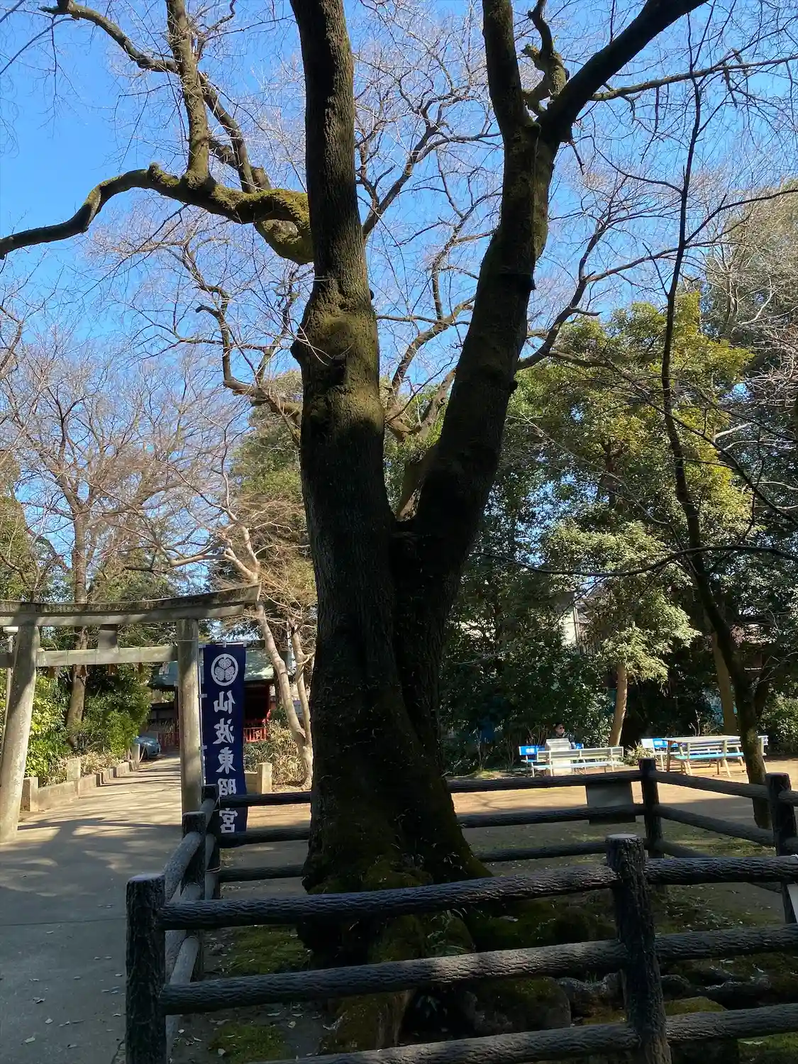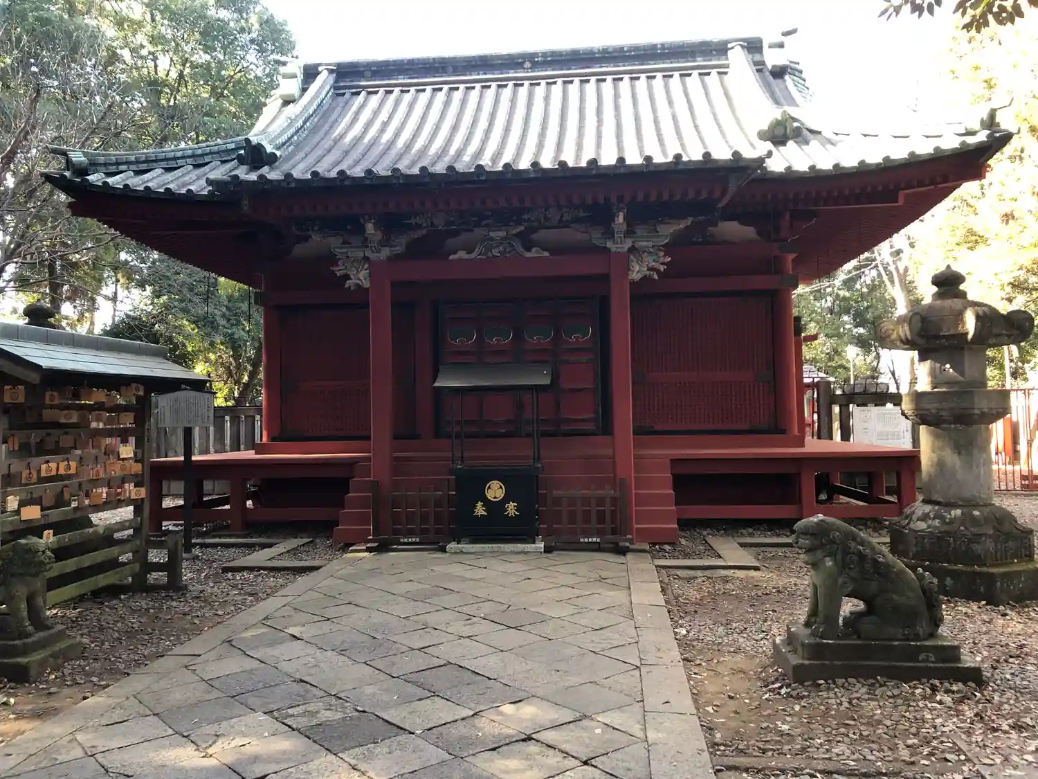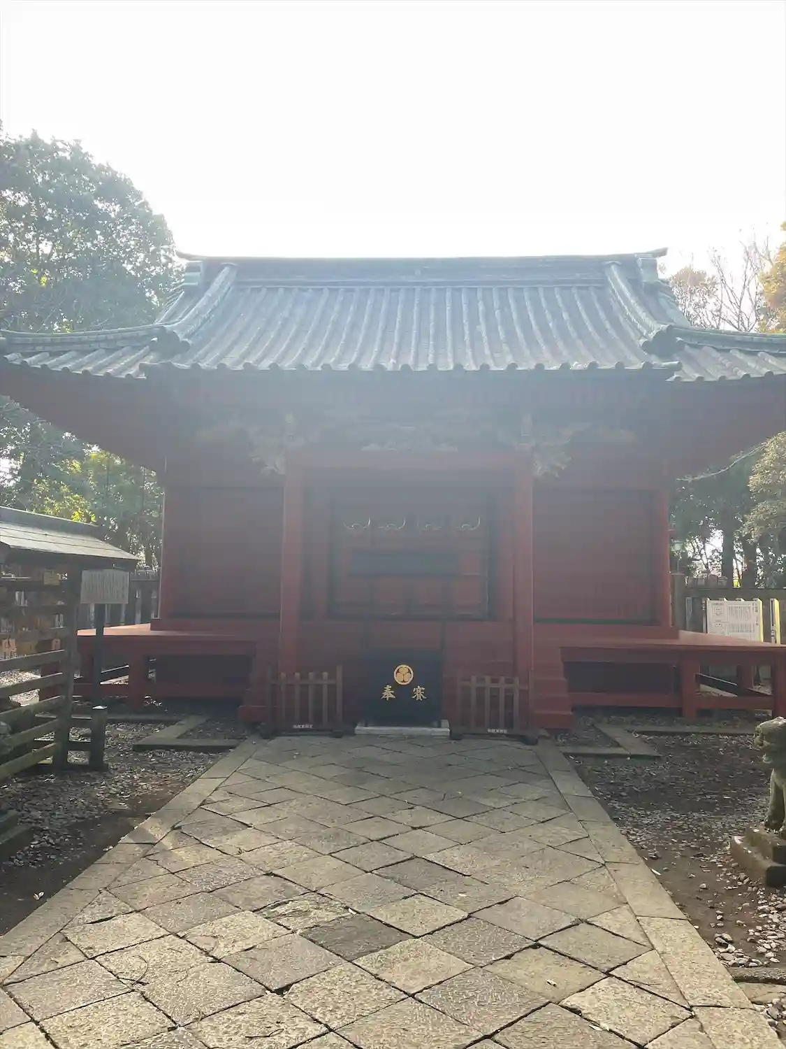 奥に見える柵の向こうに本殿がありますが、普段は入れない。