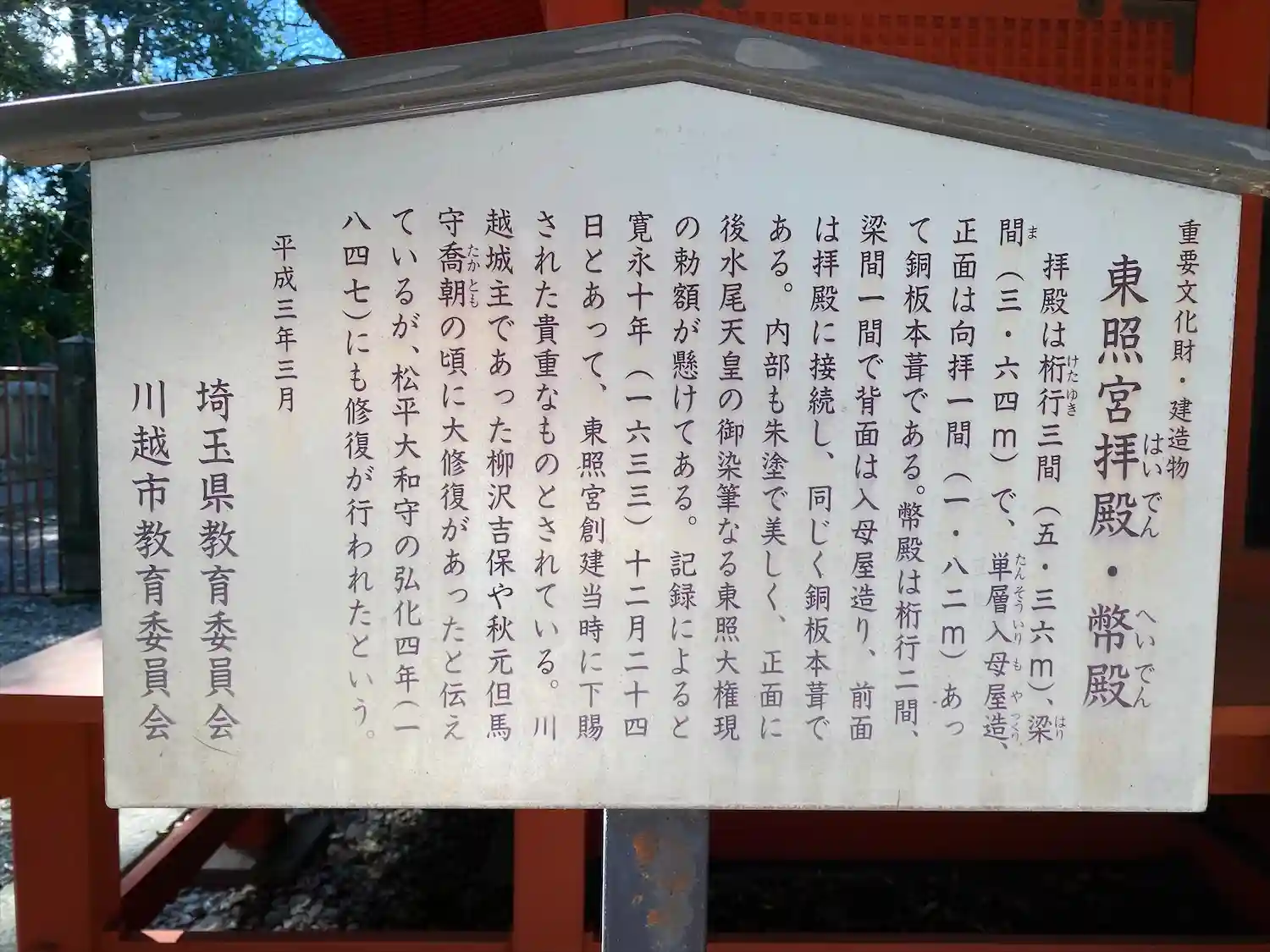 初めて行った川越、最初に訪れた喜多院の広い境内の中に仙波東照宮がありました。階段を登って開かれた扉…