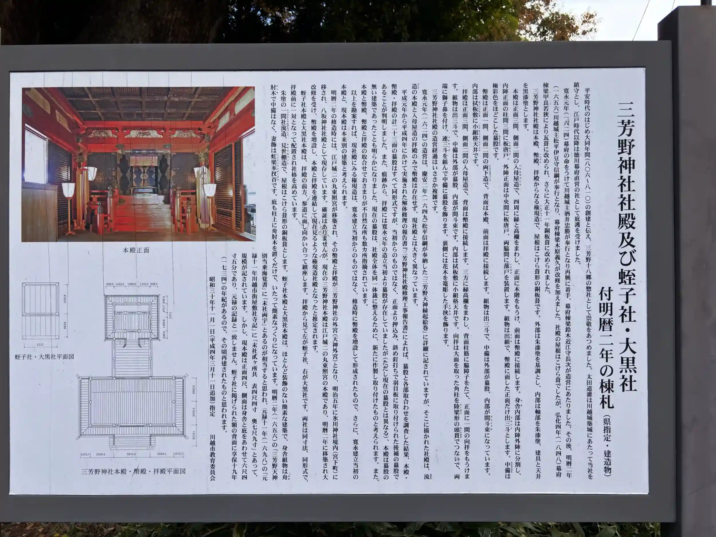 川越城内鎮守・1624年、徳川家康の命により社殿造営、後1656年に江戸城二の丸東照宮本殿が移築されたそう。