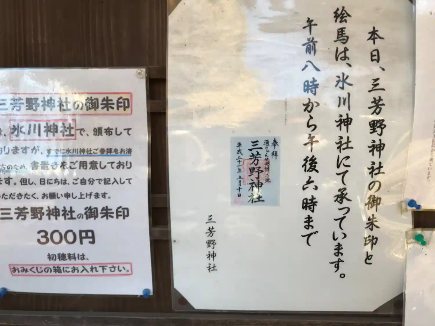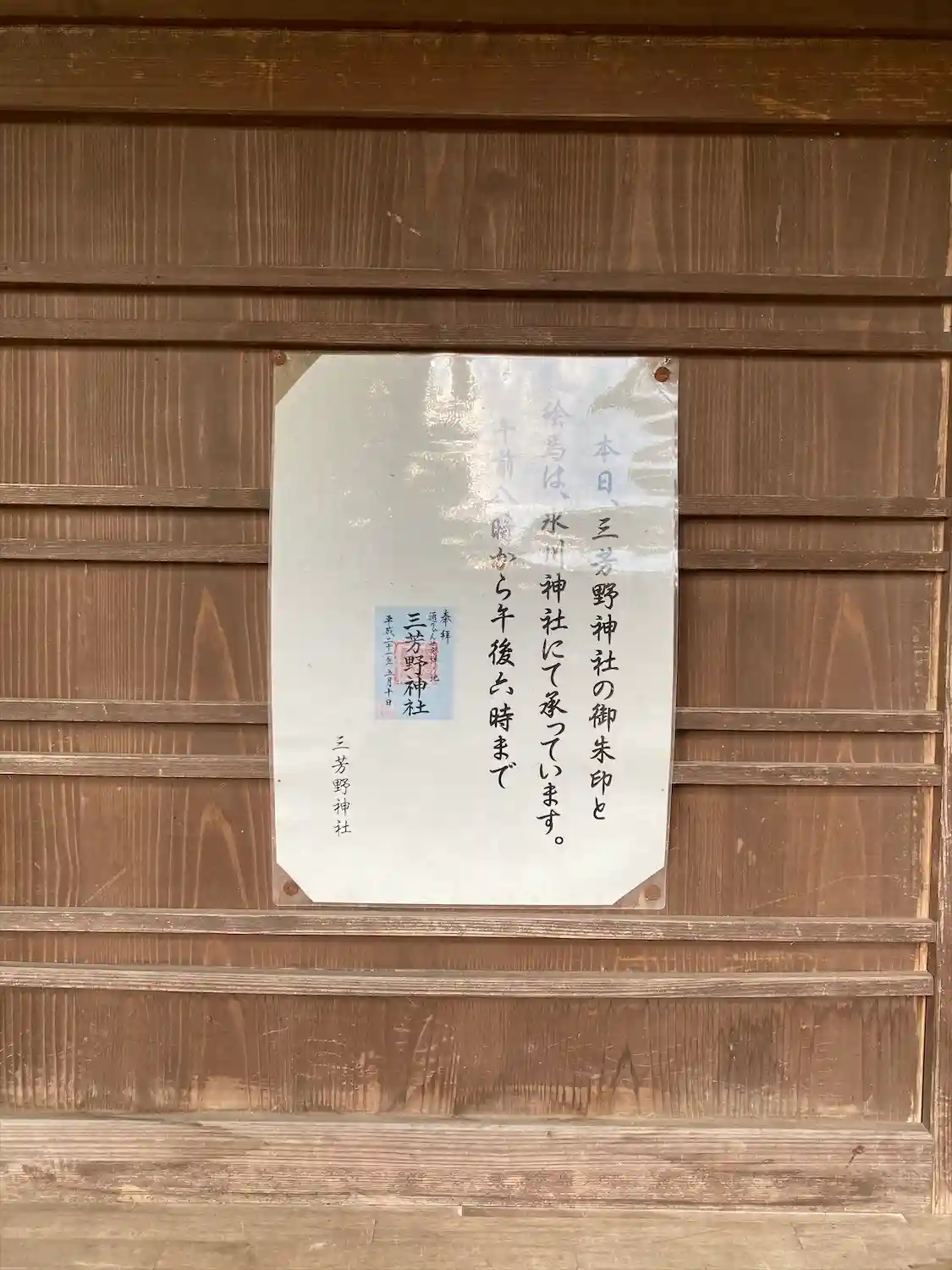 それ以外の日は土曜日であれば氏子さんから書置きがいただけます。直書きが良い場合や月~金曜日は兼務社の「川越氷川神社」でいただけるとのことです。