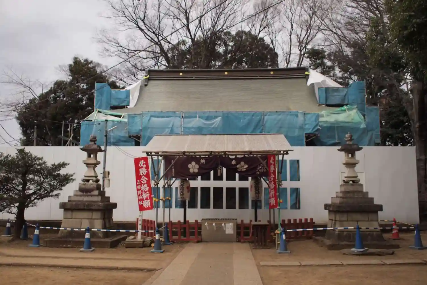 参拝した時は工事中でした。単純に幕が張られているだけでなくこうやって絵が描かれているのが粋ですね。