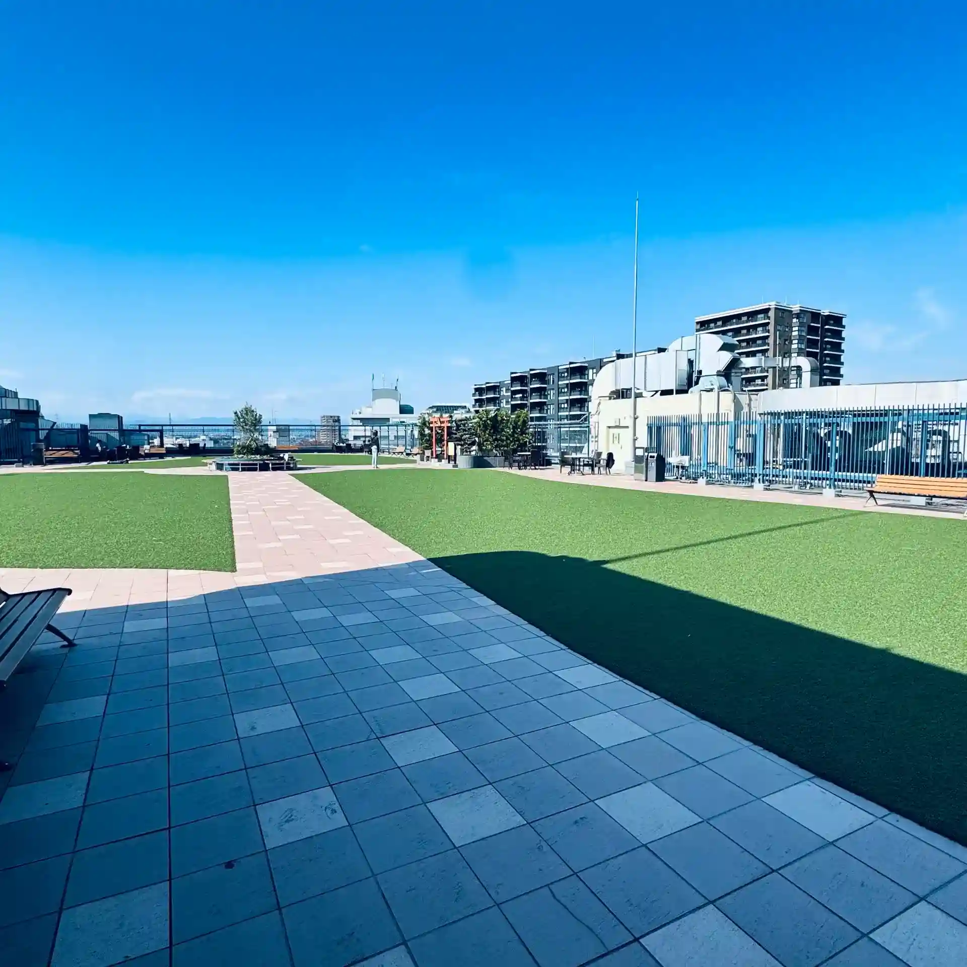 屋上に上がると広々と公園みたいな感じで眺めも良かったです😊