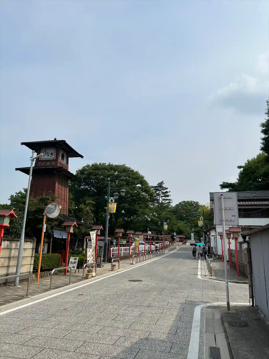 参道 奥に見える塔のようなものがお蕎麦屋さんです