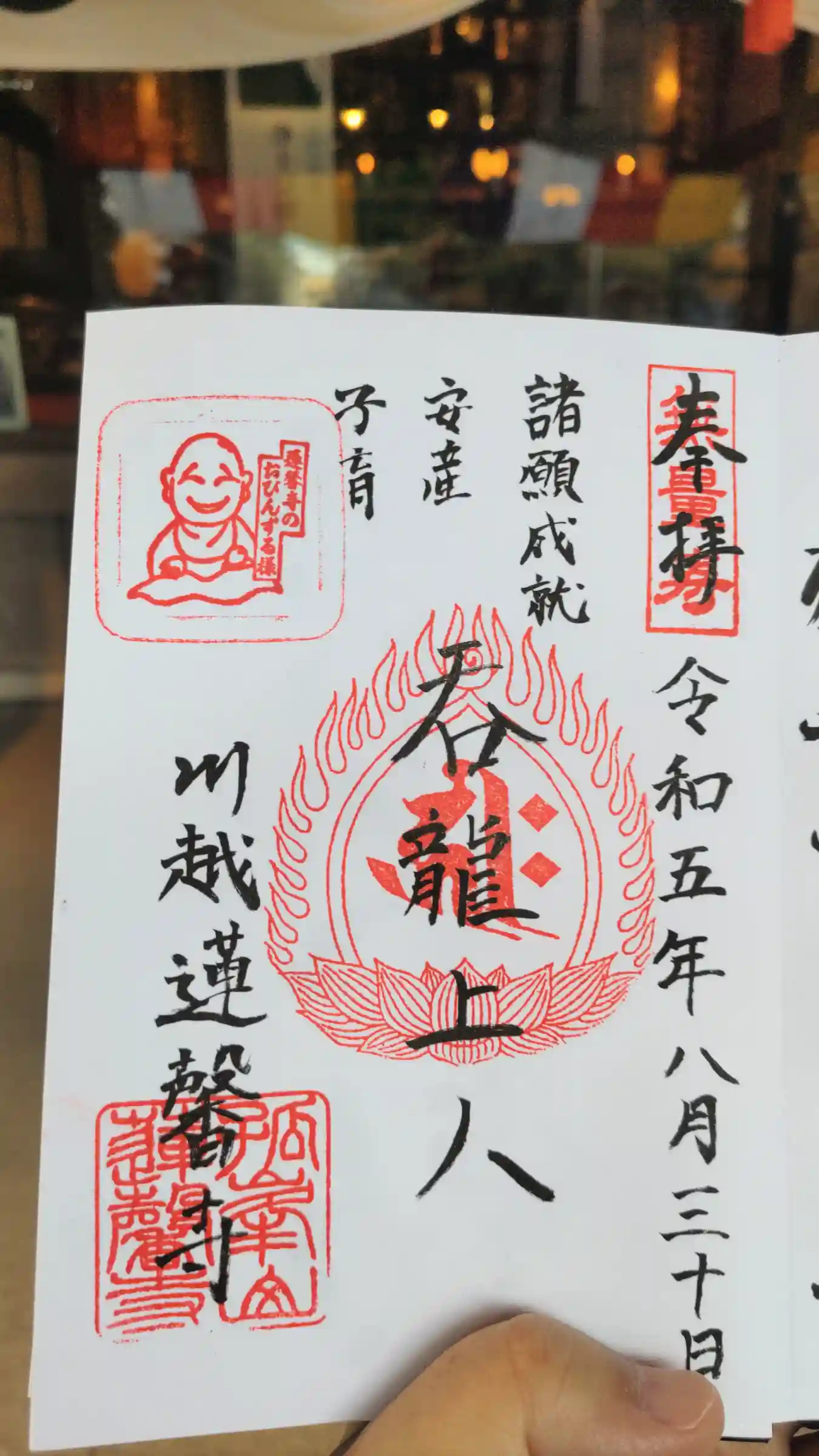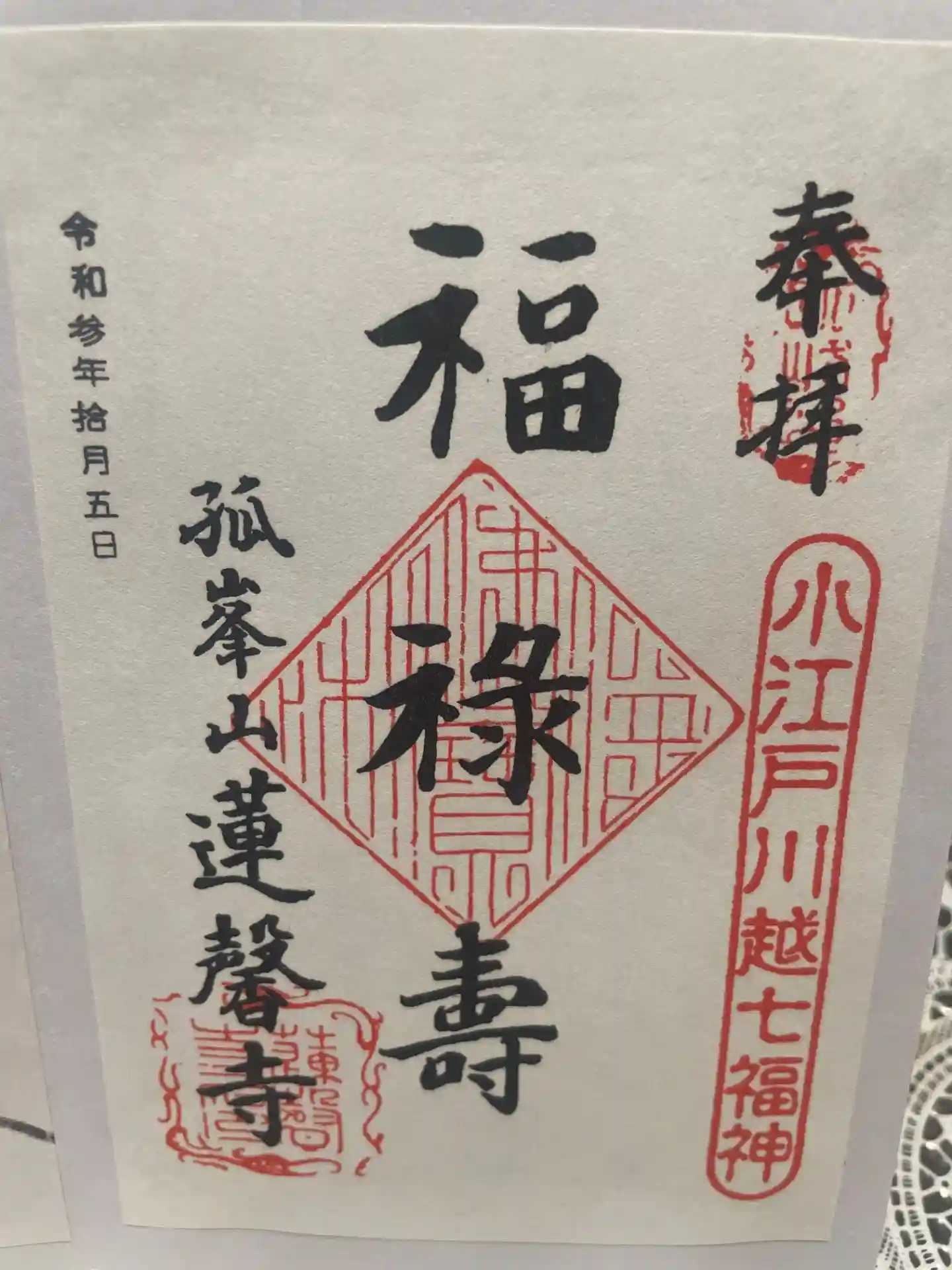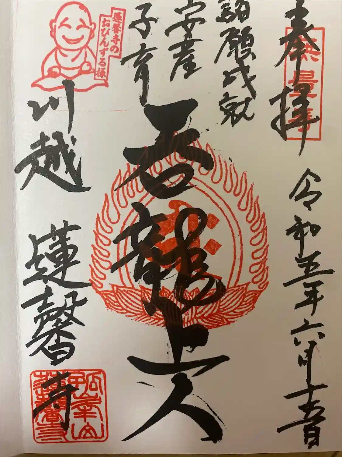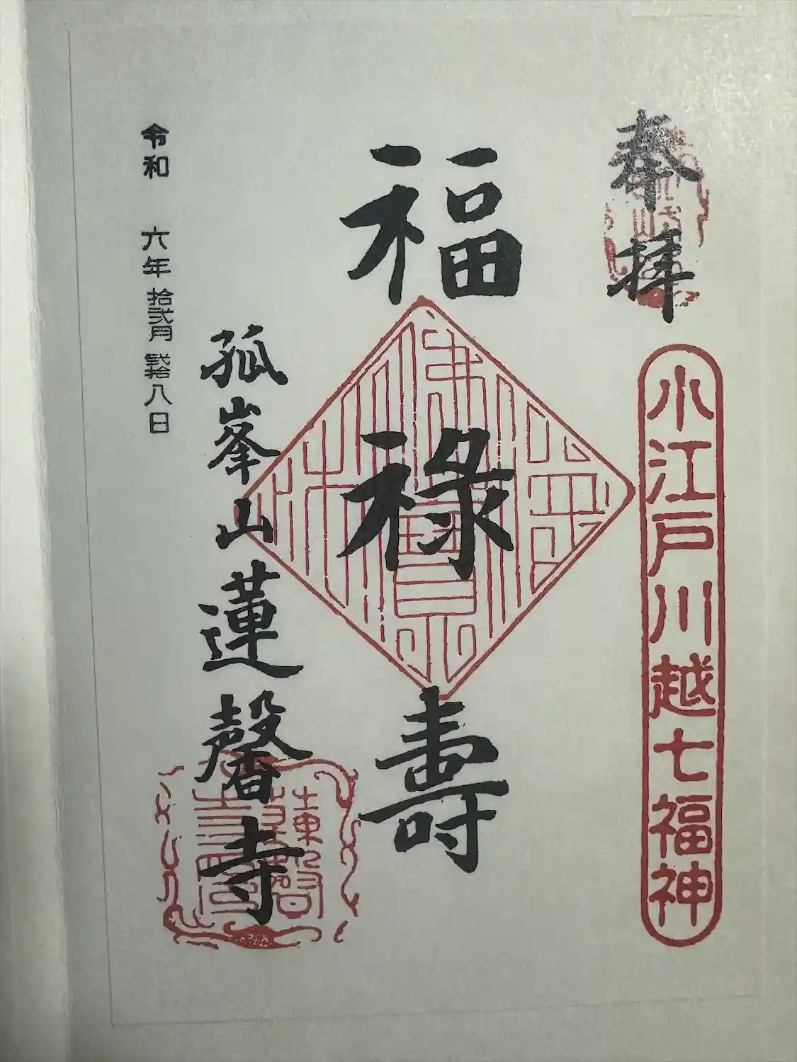 こちらでは小江戸川越七福神第五番、福禄寿の御朱印をいただ…