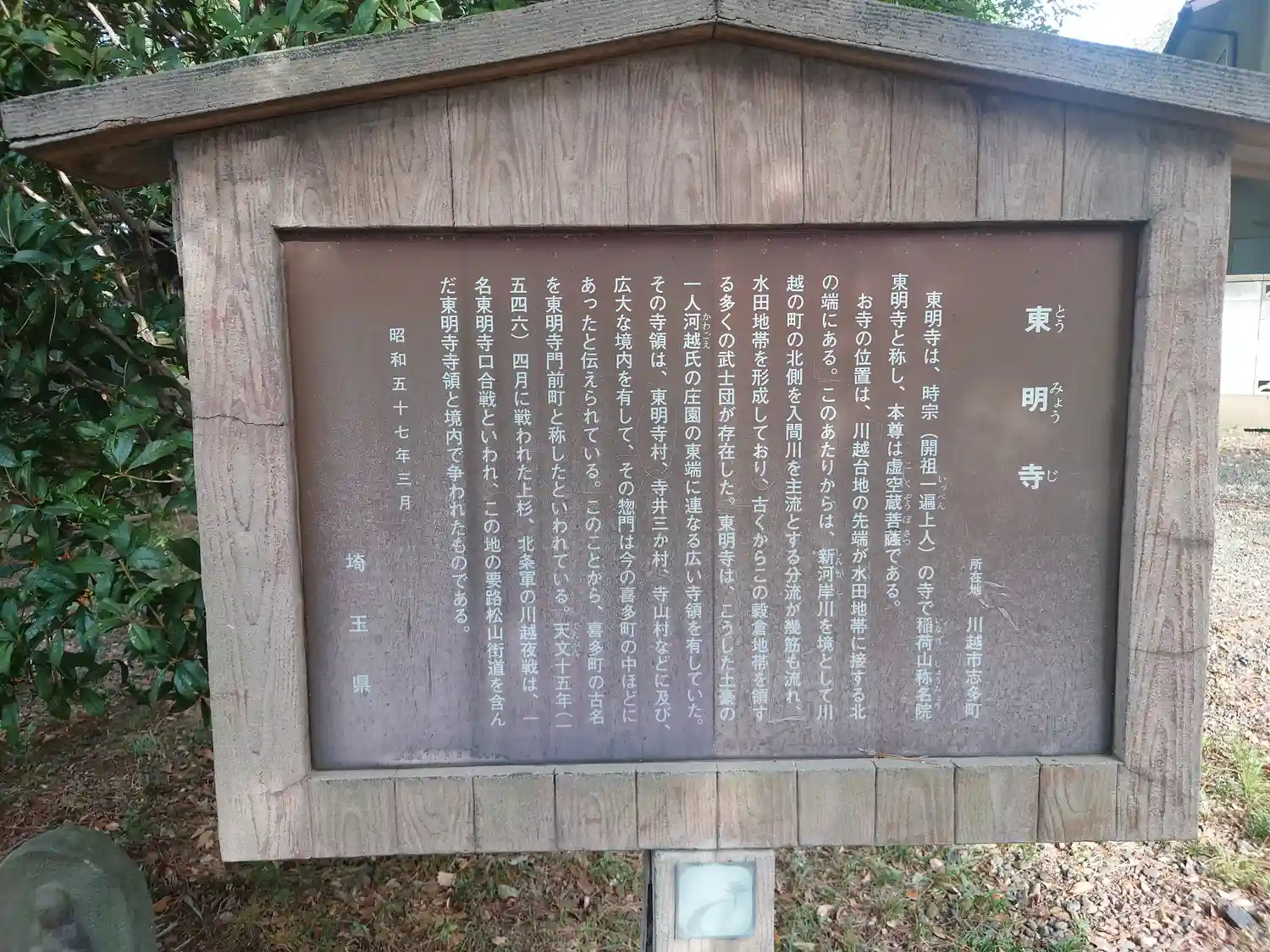 境内には『川越夜戦跡』の碑が建てられ史跡に指定されています。川越夜戦の最大激戦地がここ、東明寺寺領であることから古くは『東明寺口合戦』とも言われました。
