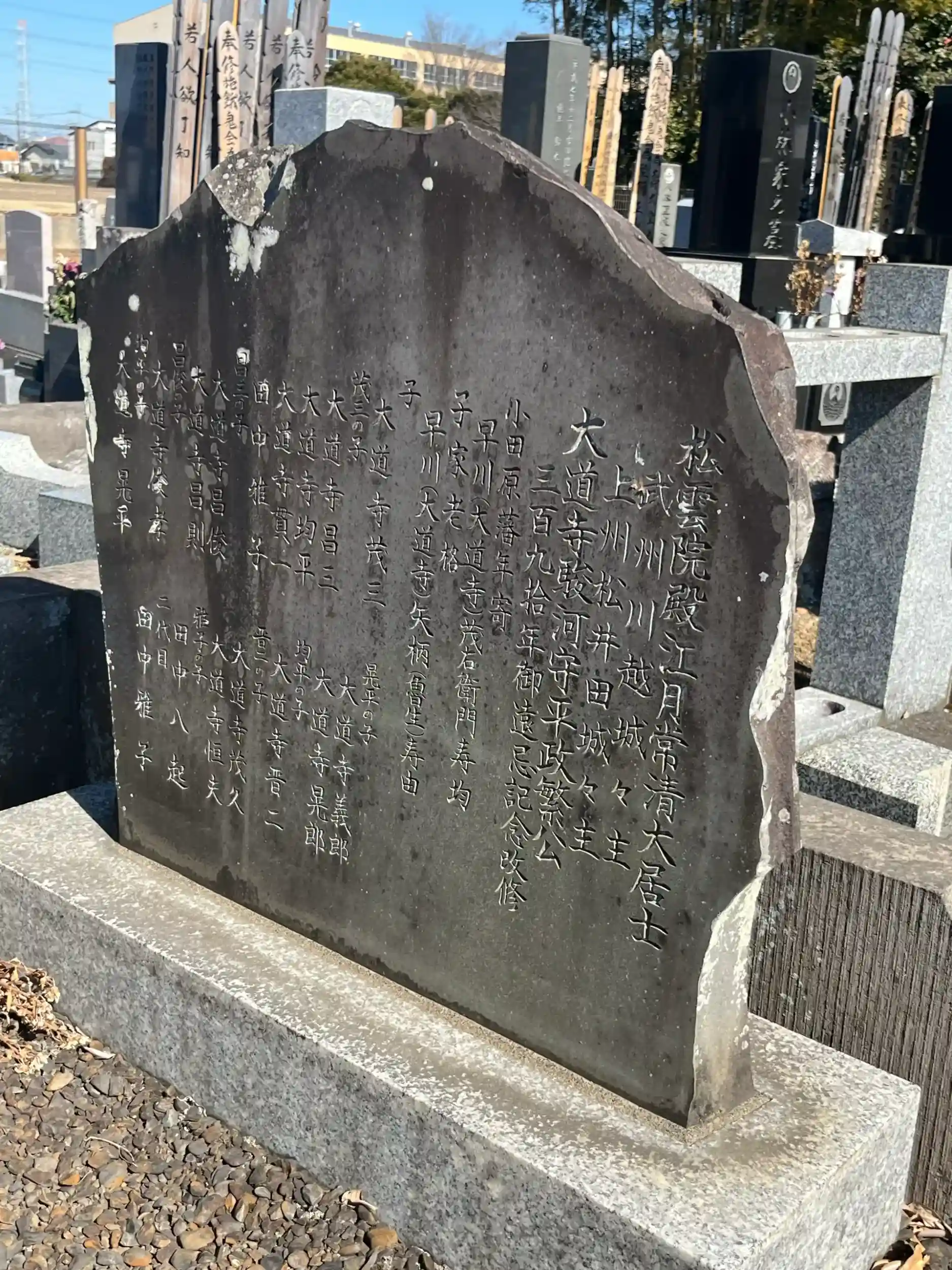 大道寺政繁公、河越太郎重頼、源義経、河越太郎重頼の娘であり義経の妻でもある京姫の供養塔がひっそりと存在。秀吉も恐れた文武兼備の大道寺政繁も敗者の歴史とは残酷だなぁと実感。