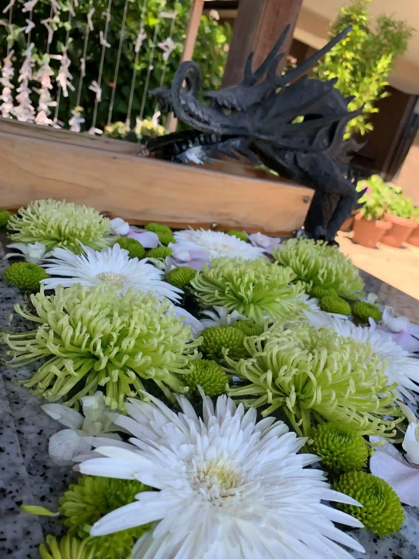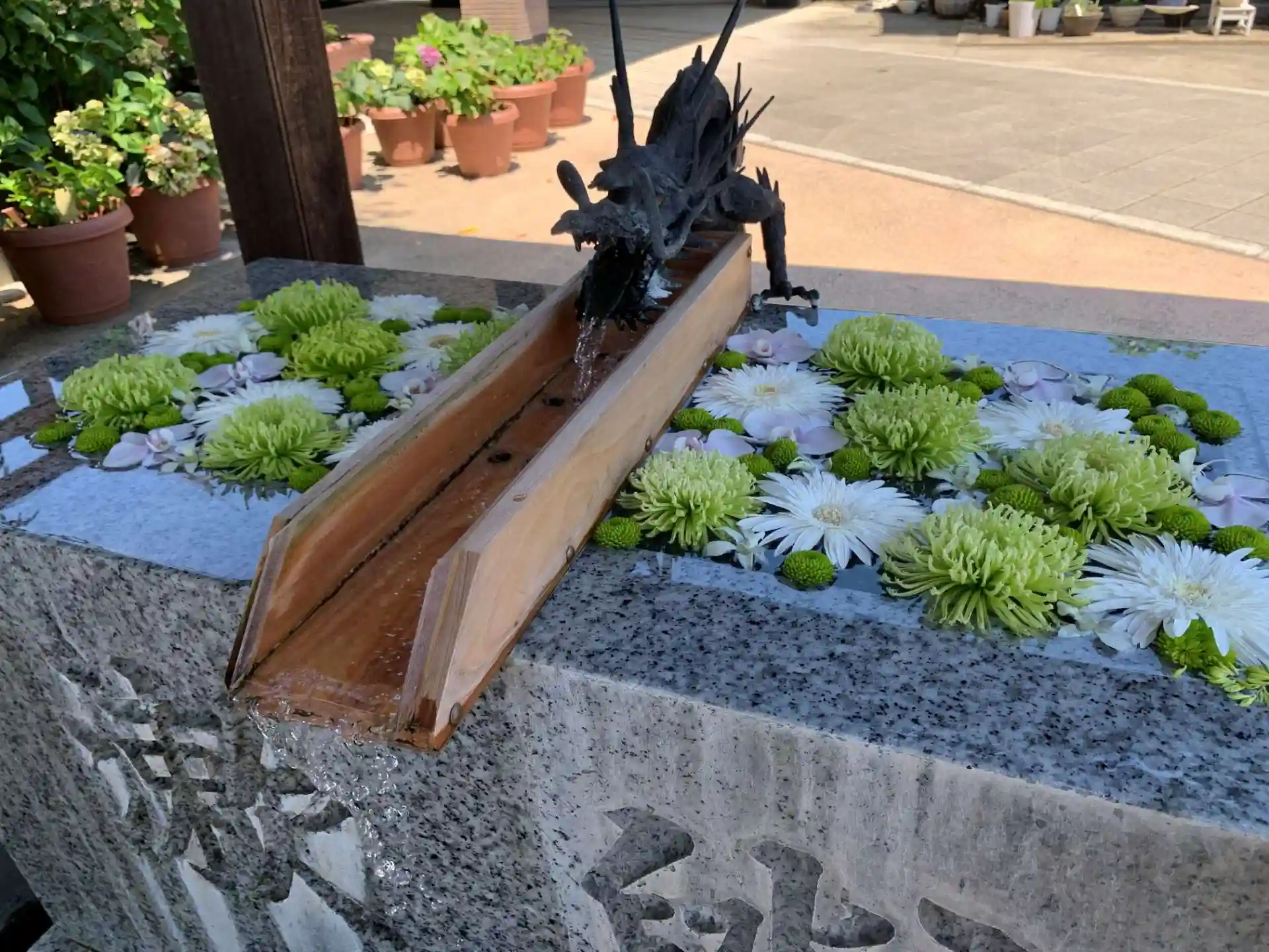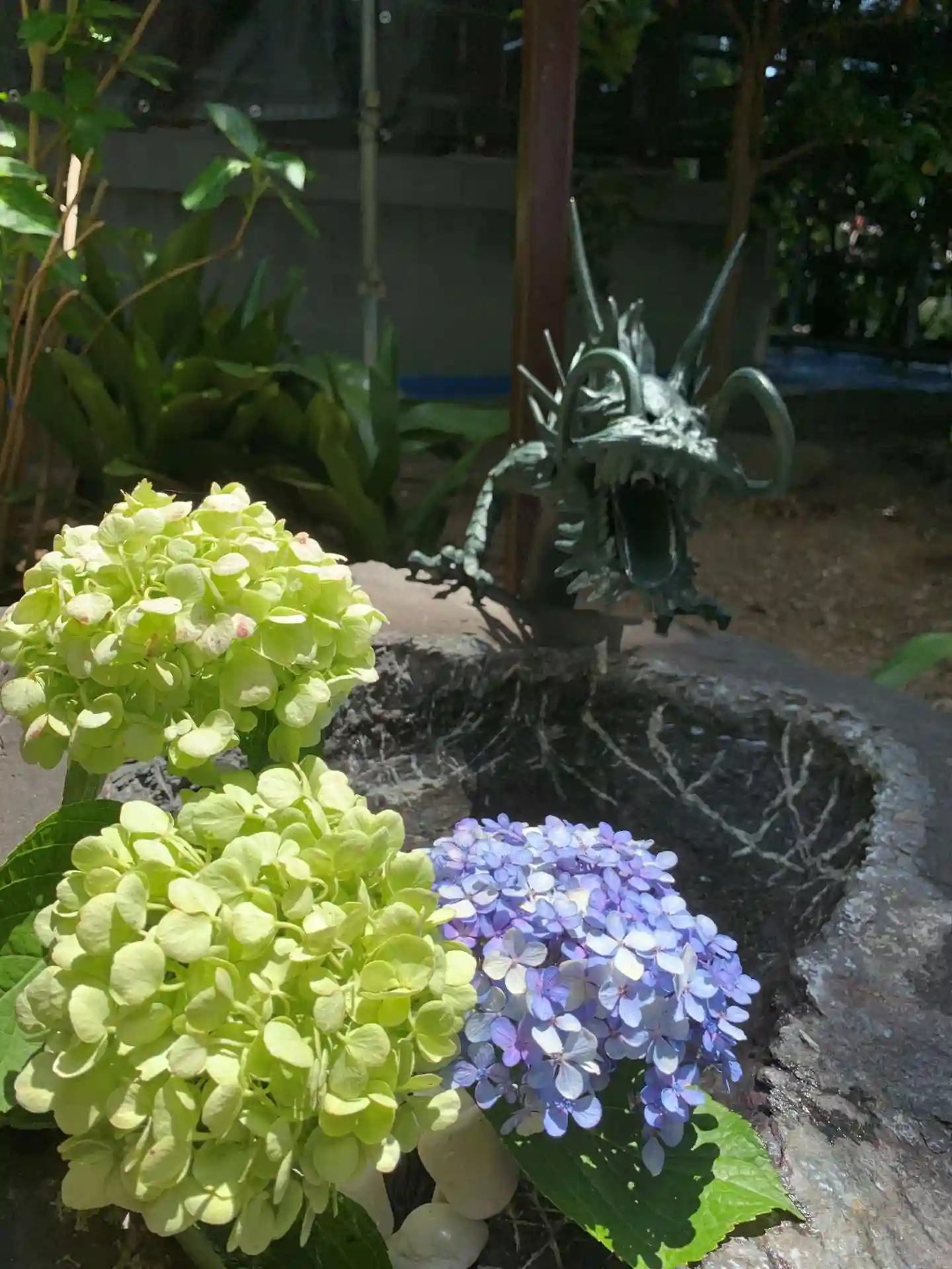 使われていない手水舎に紫陽花が射してあって