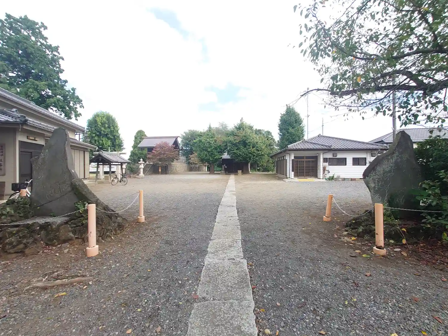 社号標と社務所。神社は社務所の奥にあります。