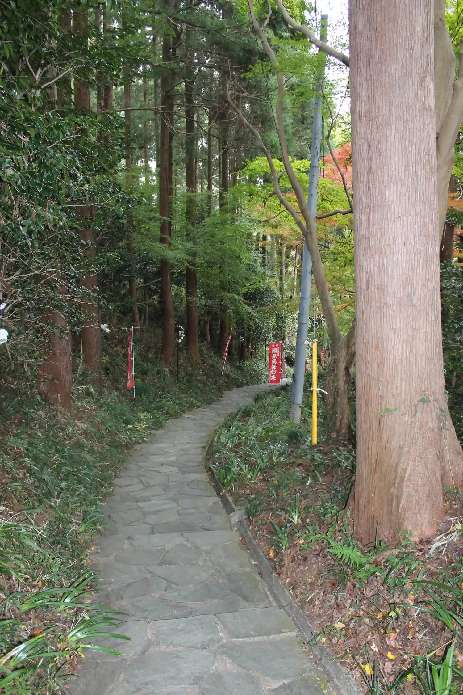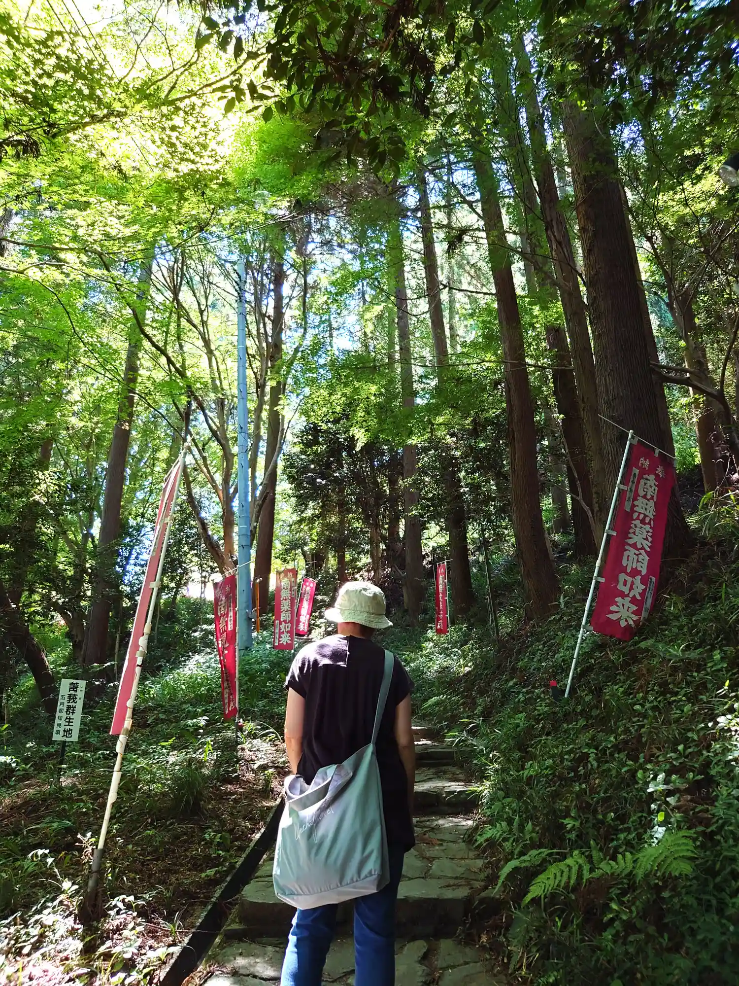 ここから上の段の境内に向かって山道を登る。ちゃんと整備はされてはいるが、草木が深くサバイバル風。
