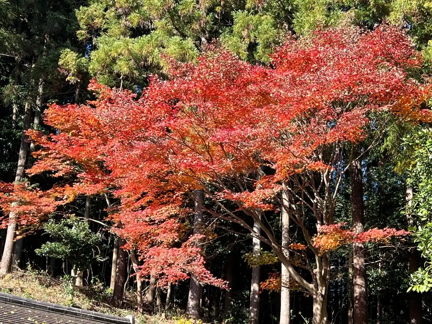 本堂正面から階段を下りると、ワインディングの道に出る。この近くに駐車場がある。