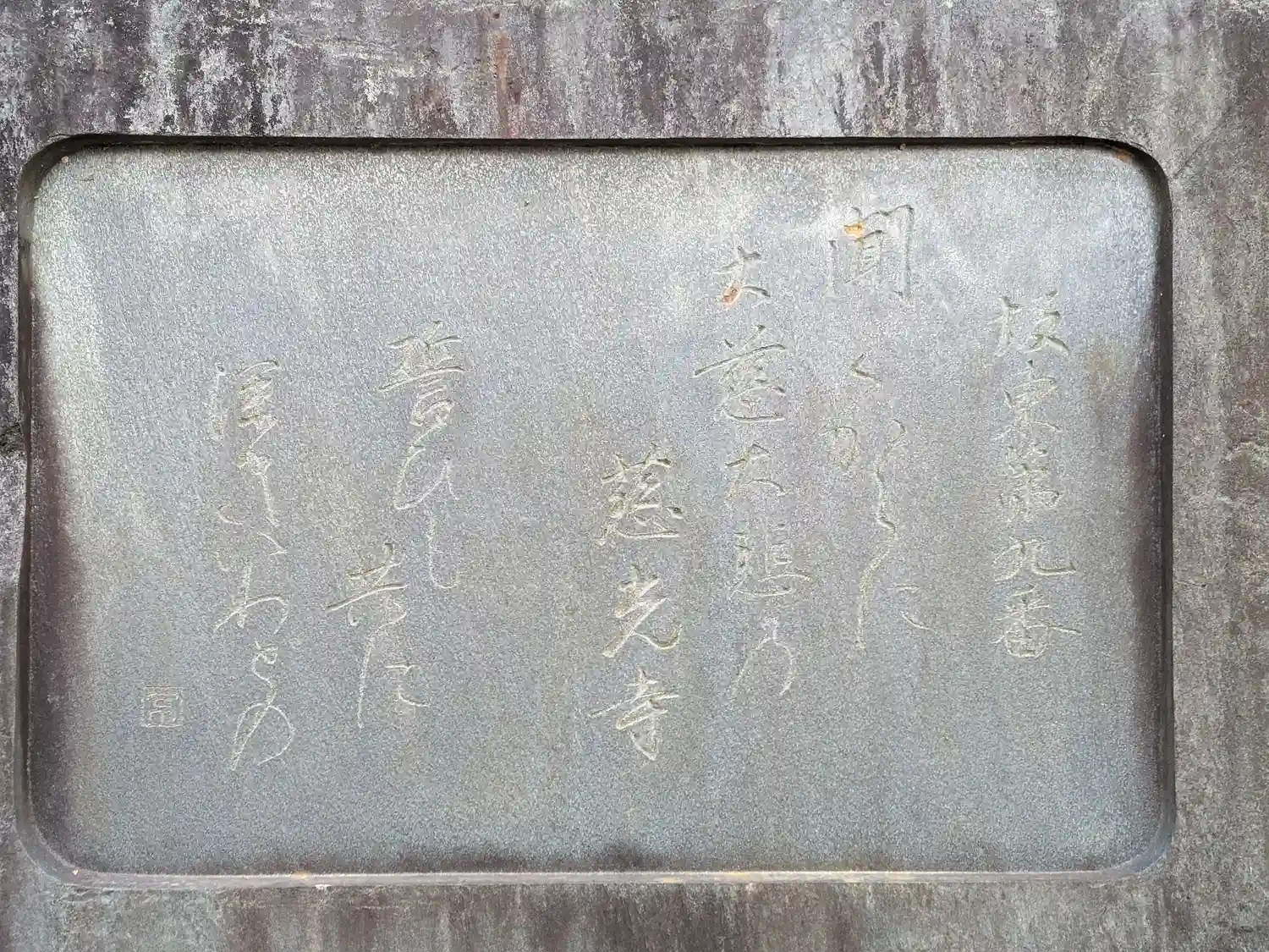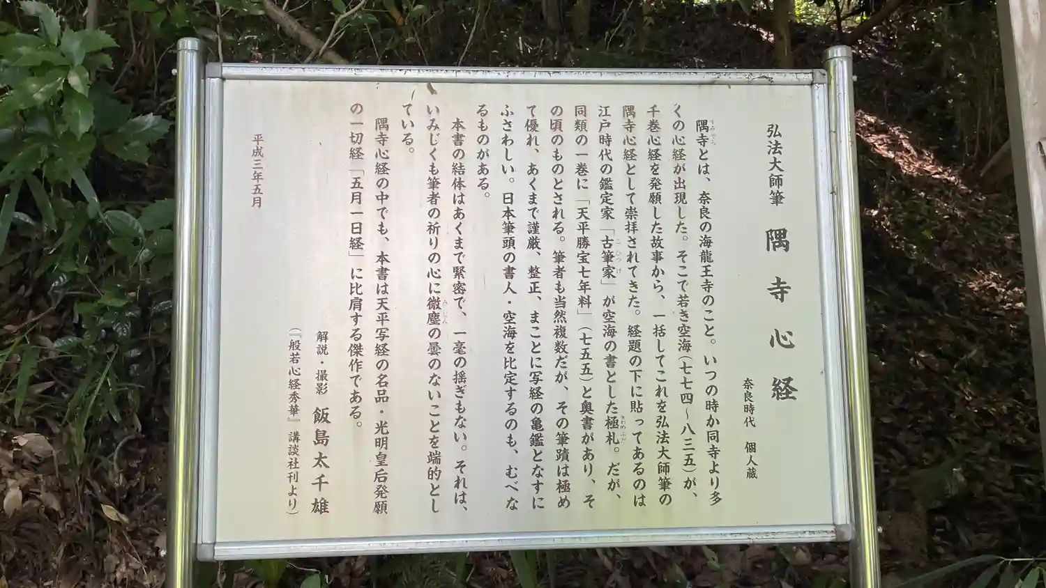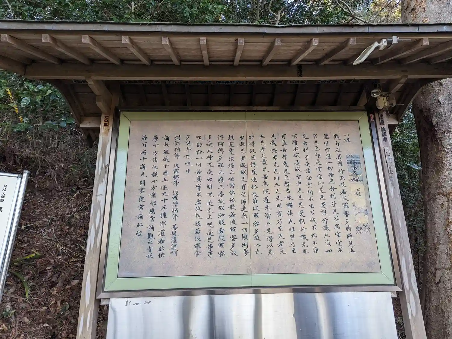 山道に立っている<弘法大師筆・隅寺心経>のレプリカ。