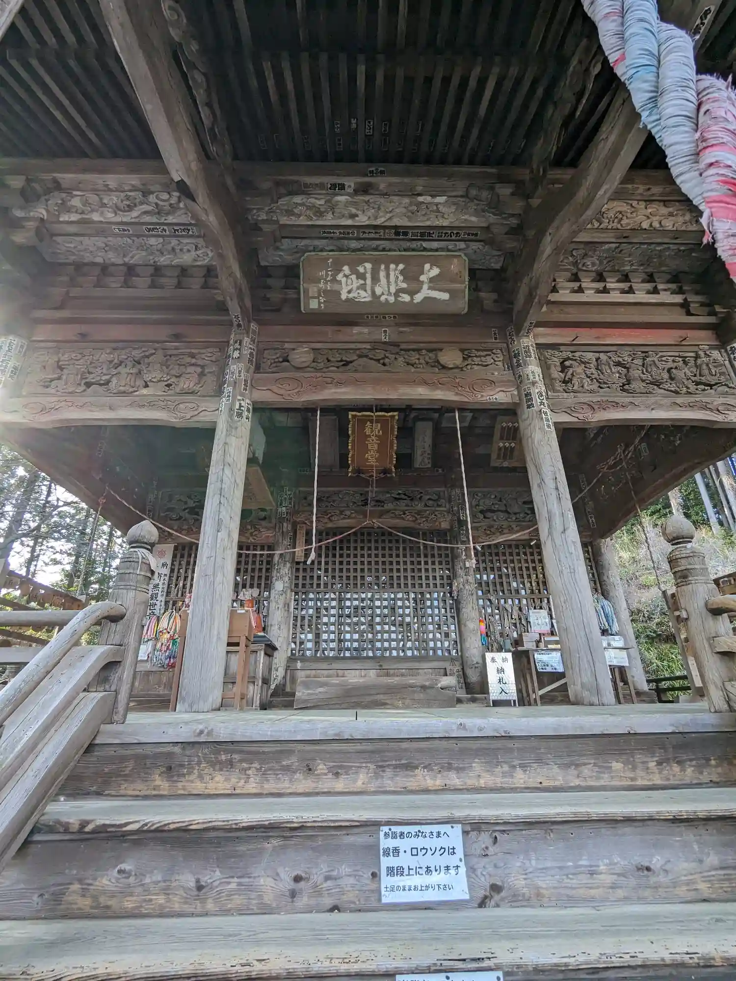 山の中、階段を登った先に観音堂があります。ちょっとした山登りみたいな。。