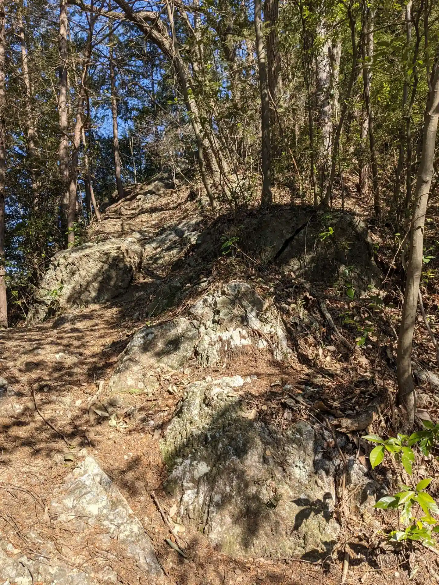 鳥居をくぐって15分程度歩きますがどちらかというと登ります。足元は岩と枯れ葉で滑りやすい上に、道という道はなく狭いスペースを岩を掴みながら這い上がっていきます。