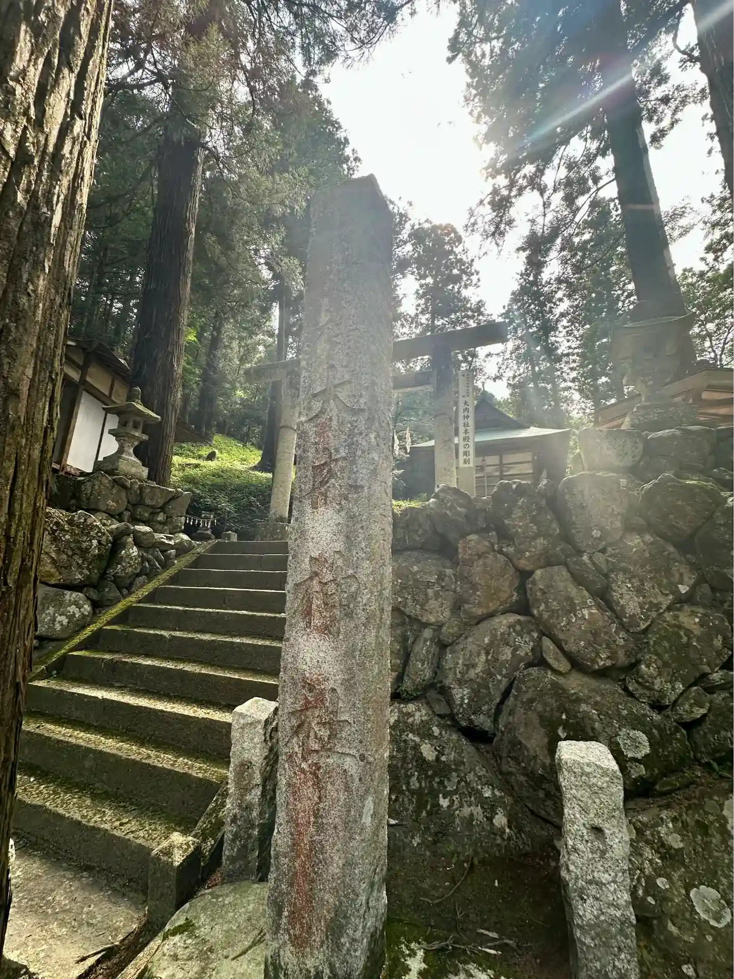階段手前の石柱に、大内神社と刻まれています。