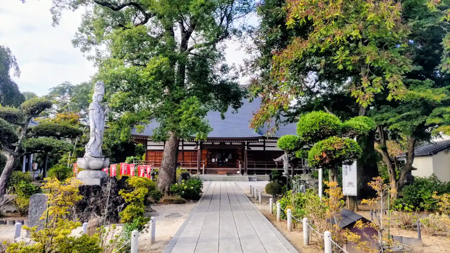 山門の向かいとお寺の右手に駐車場がありました。
