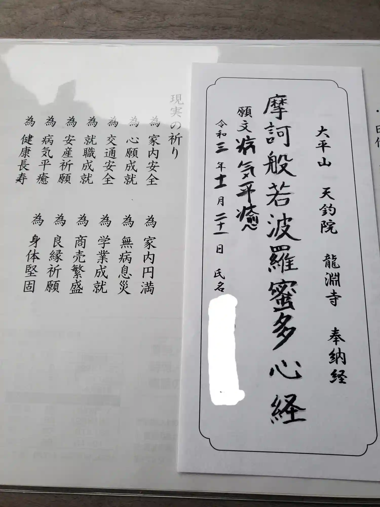 御朱印をいただく時に、納経(筆ペンで一行と祈願する言葉(家内安全など)なぞって…