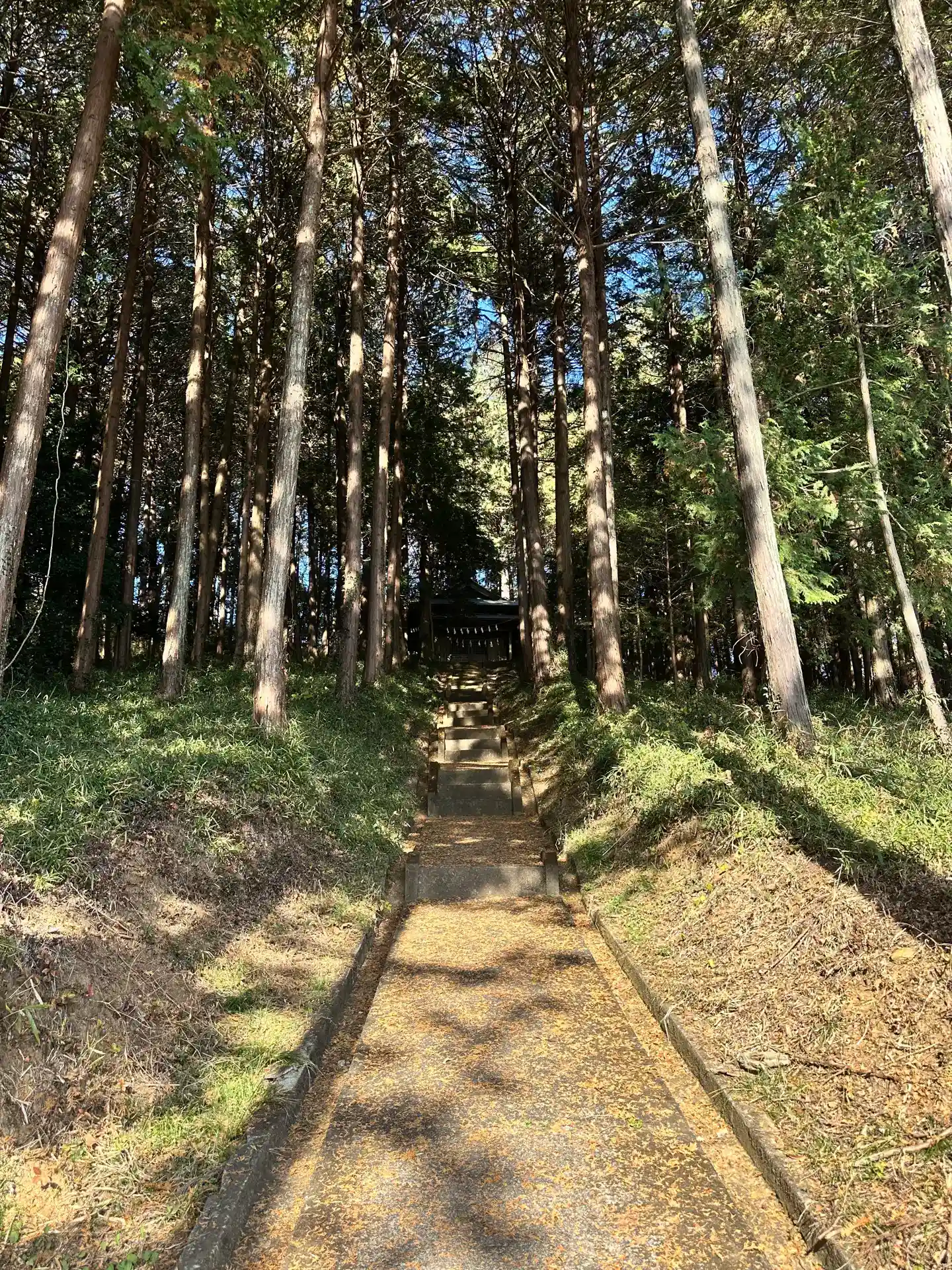 だんだん見えてきました。周りは杉の木が鬱蒼としていて、なんだか神妙な雰囲気がしています。