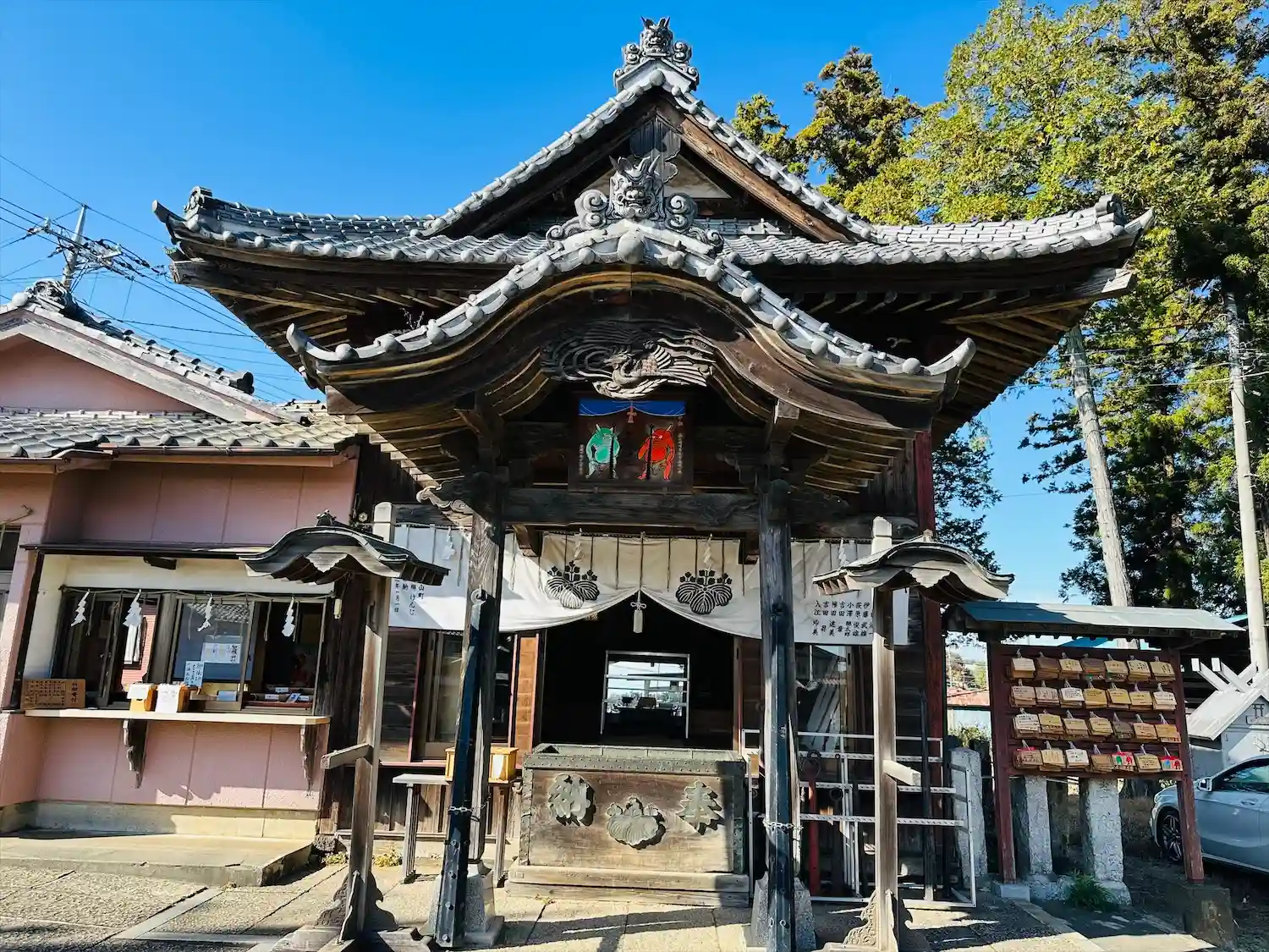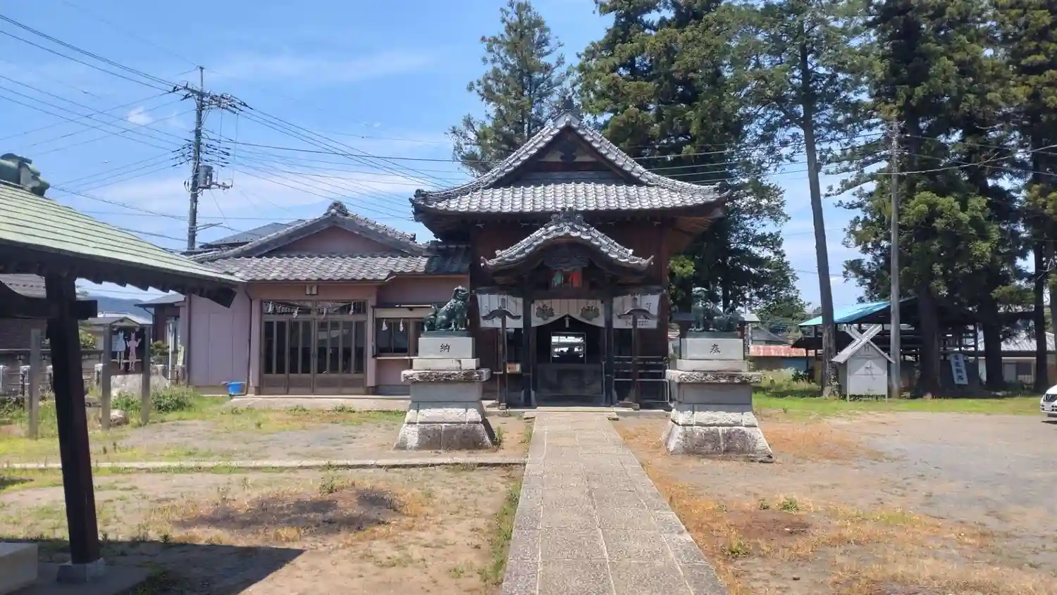 右側に神楽殿がありその前に駐車