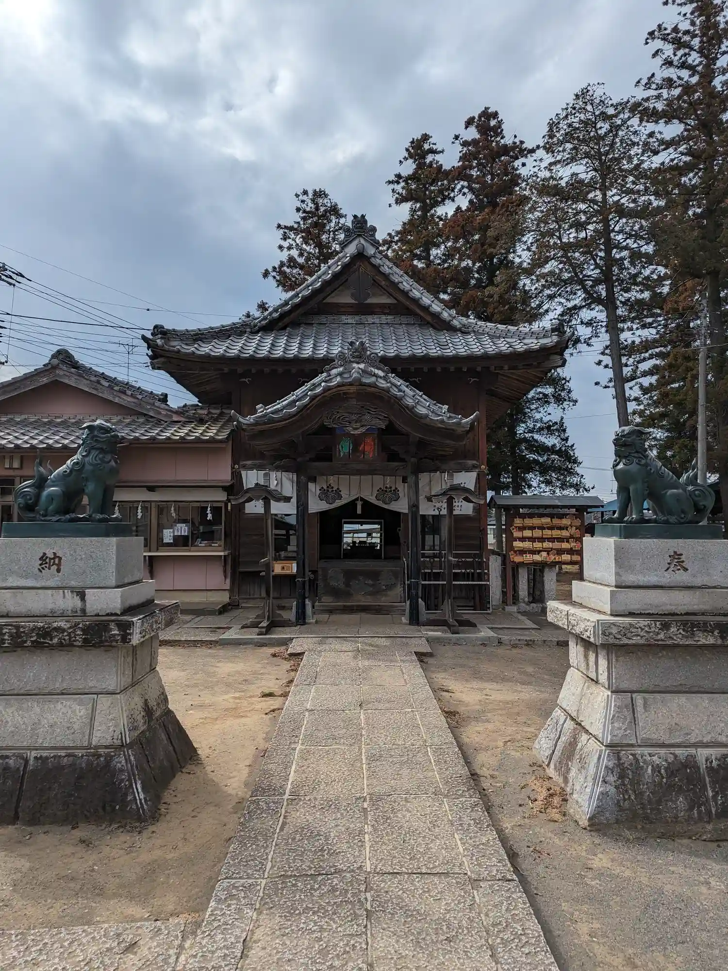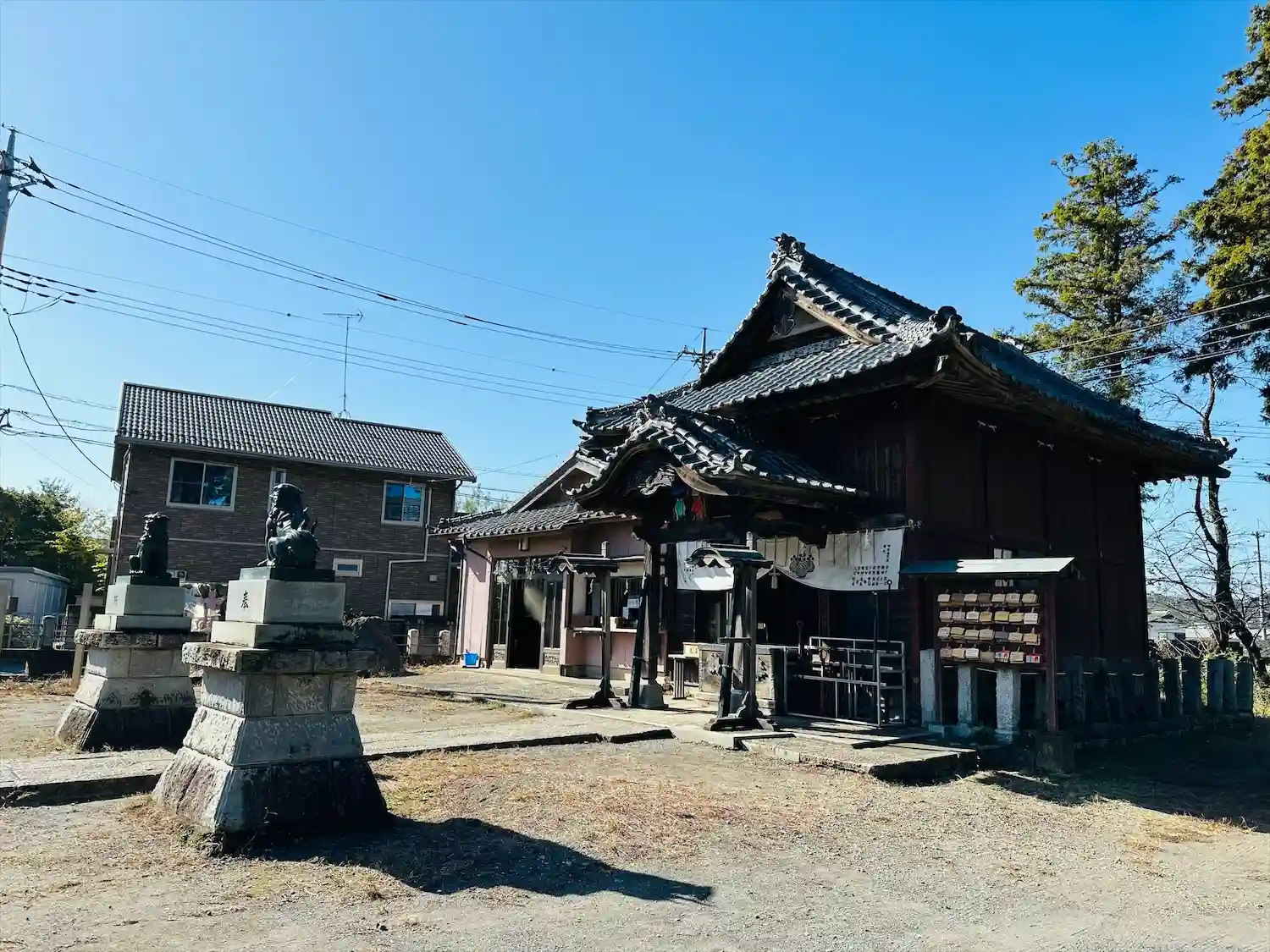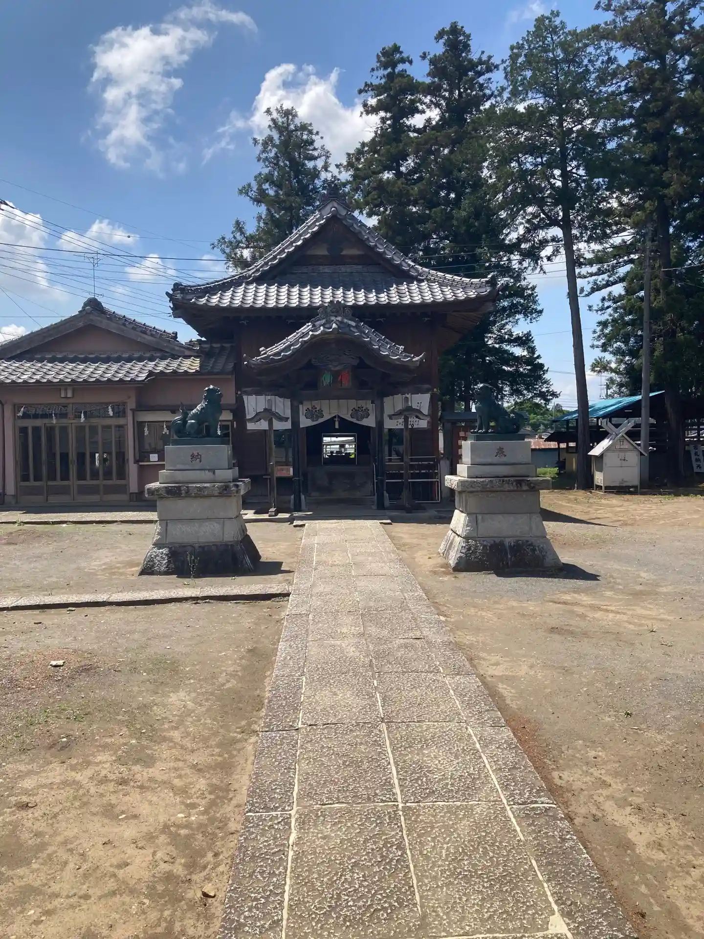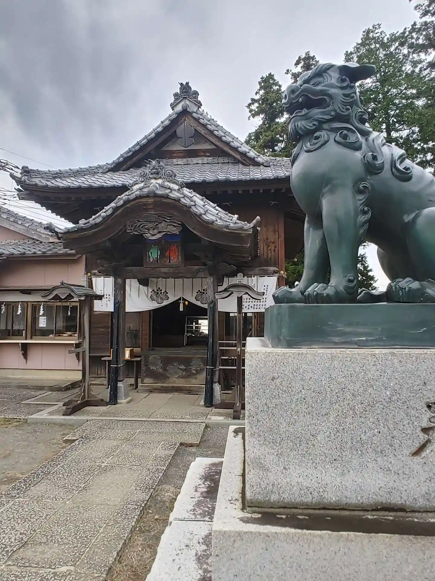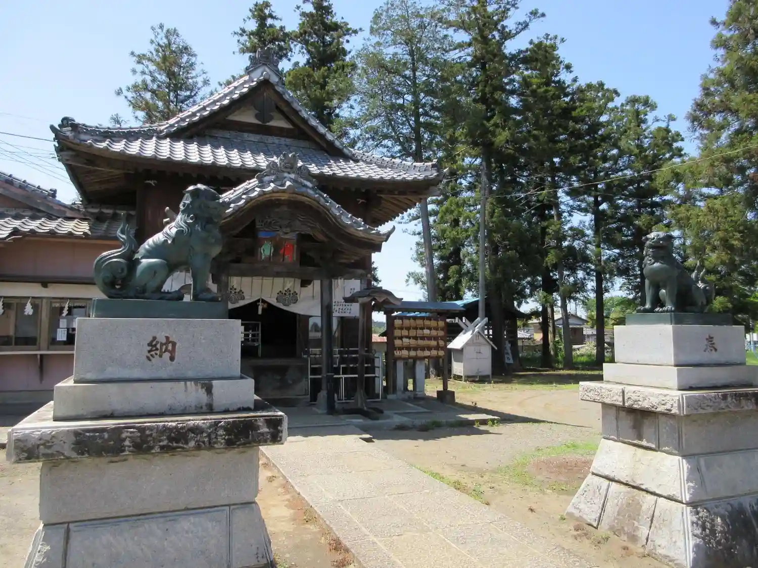 鬼鎮神社の狛犬と拝殿