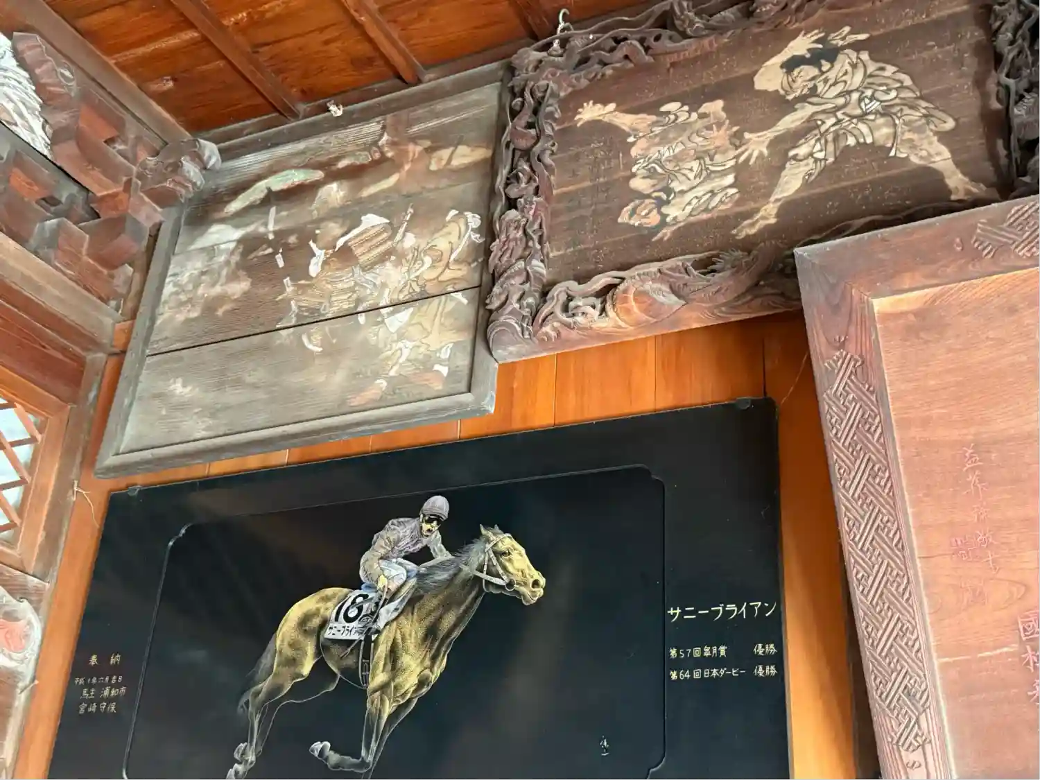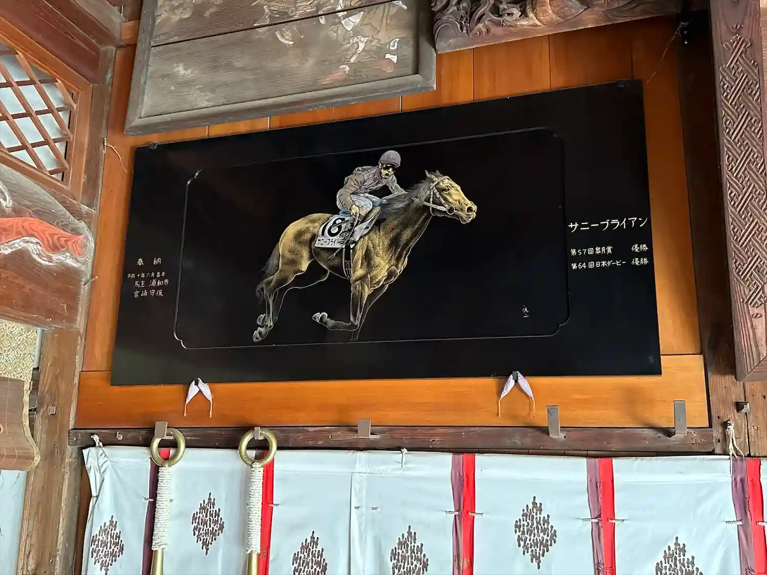 なんと往年の二冠馬サニーブライアンの奉納額あり!