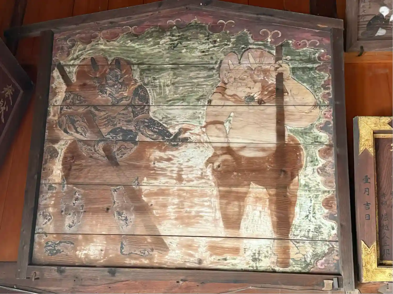 赤鬼と青鬼が描かれた木札。