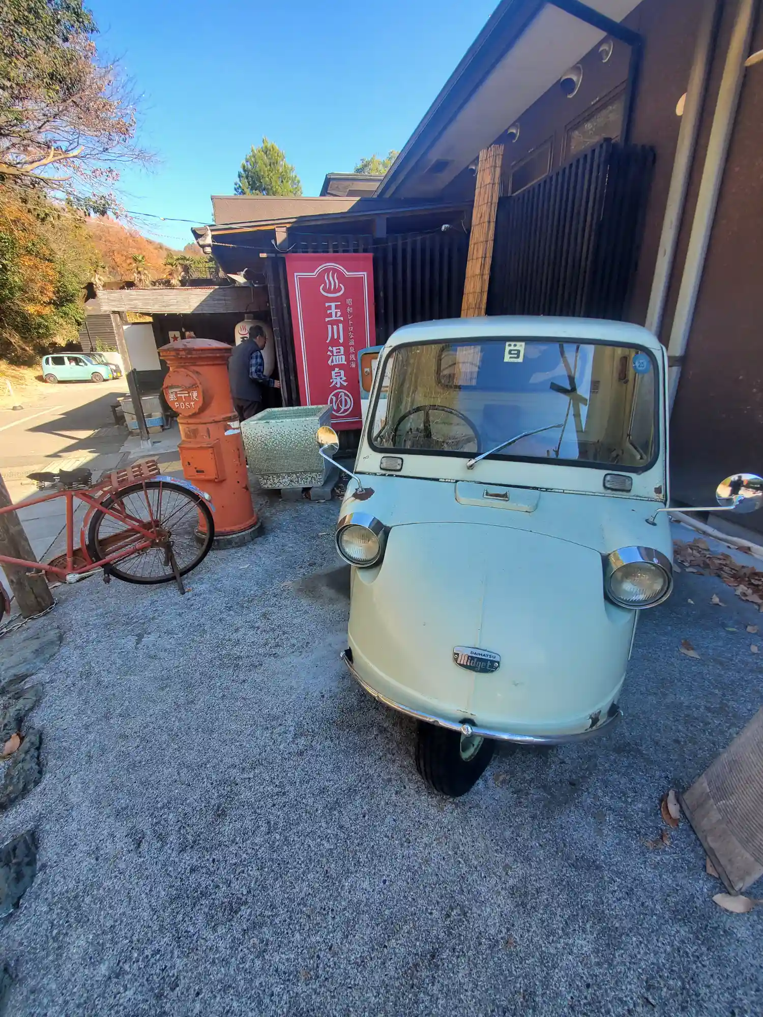 温泉前にはオート三輪が二台