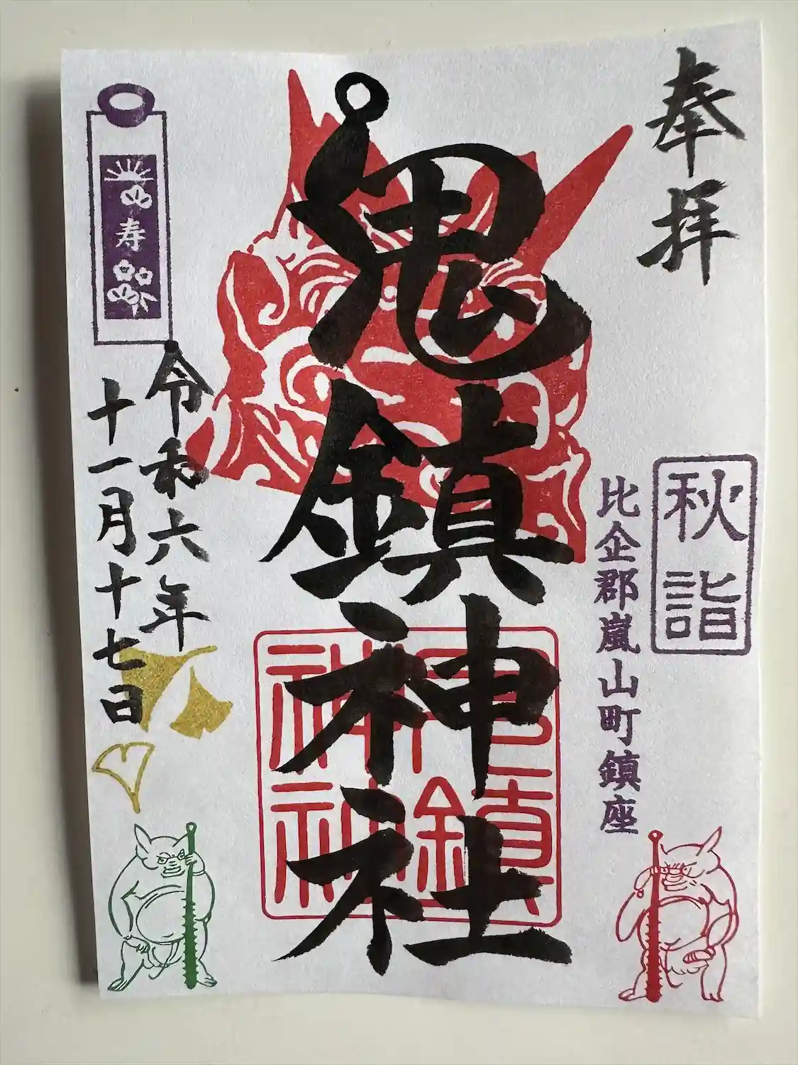 鬼鎮神社の御朱印(書置き)