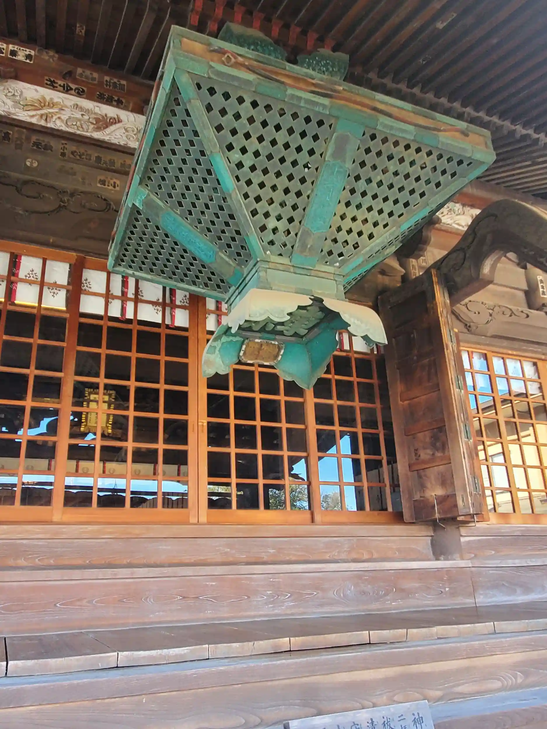 拝殿前には大きな灯籠(?)が下がってる