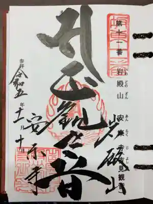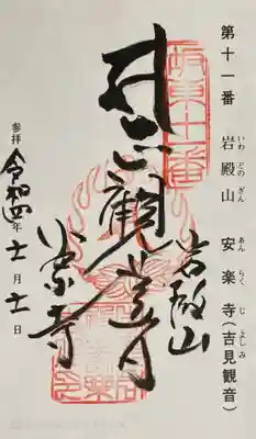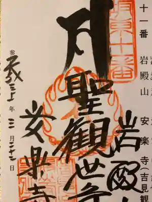 ![岩殿山安楽寺(吉見観音)の御朱印]()