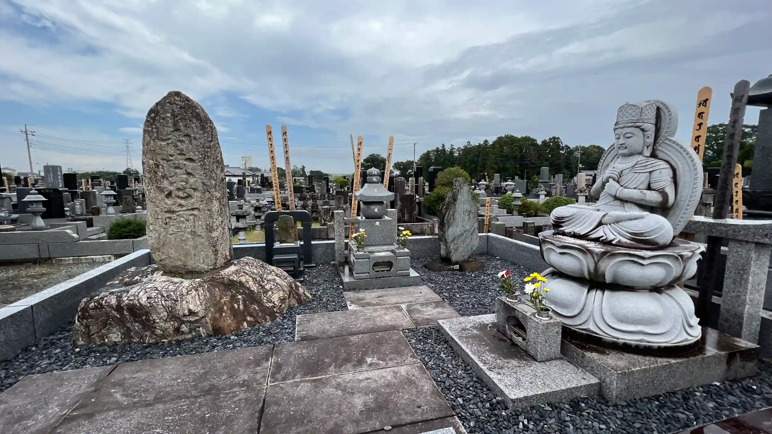 歩いて5分ぐらいのところに「畠山重忠公史跡公園」があり、重忠の像と重忠のお墓があります。献花台が設置されてた!