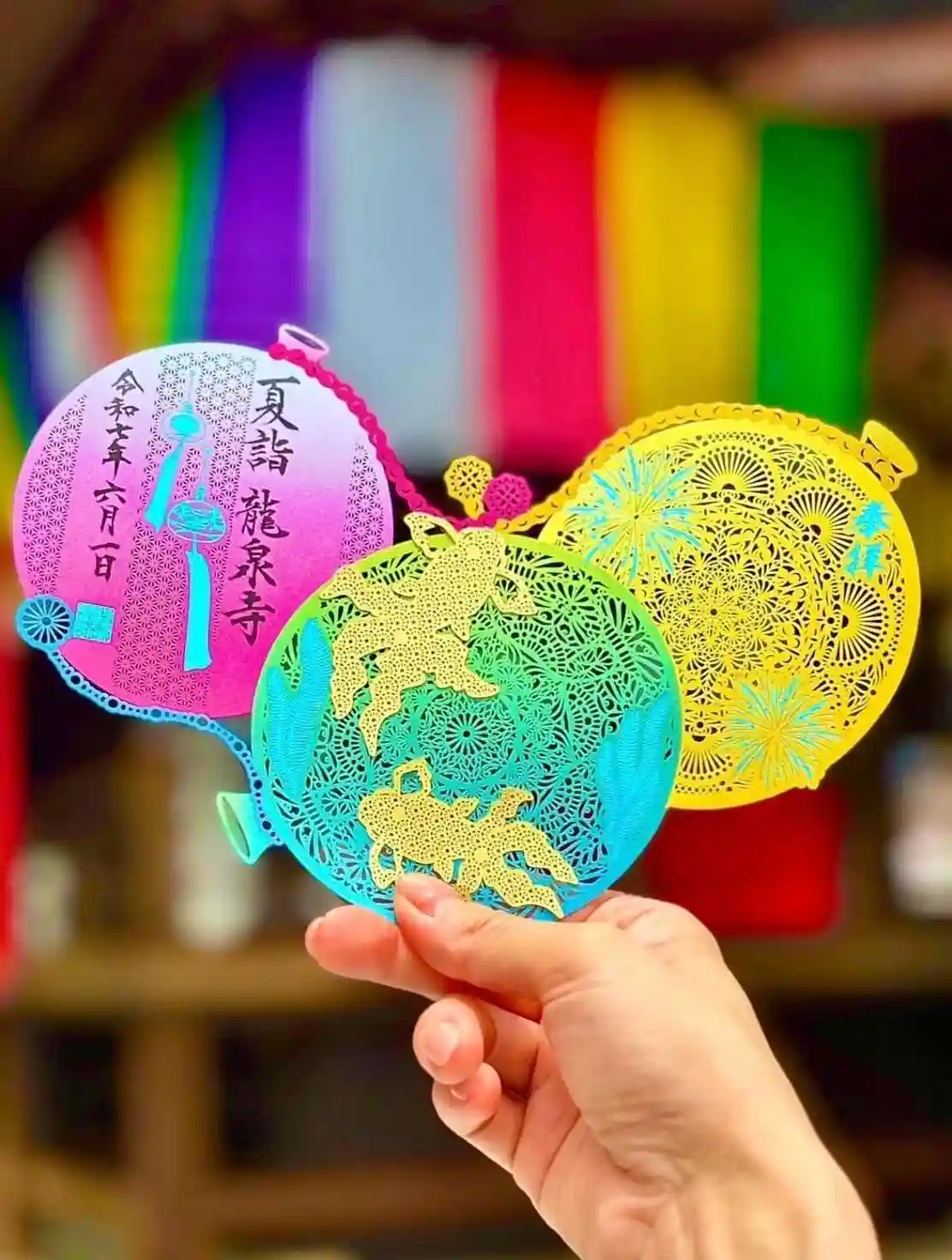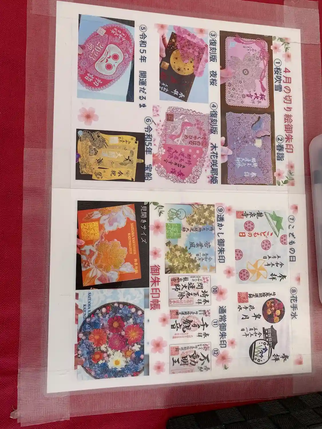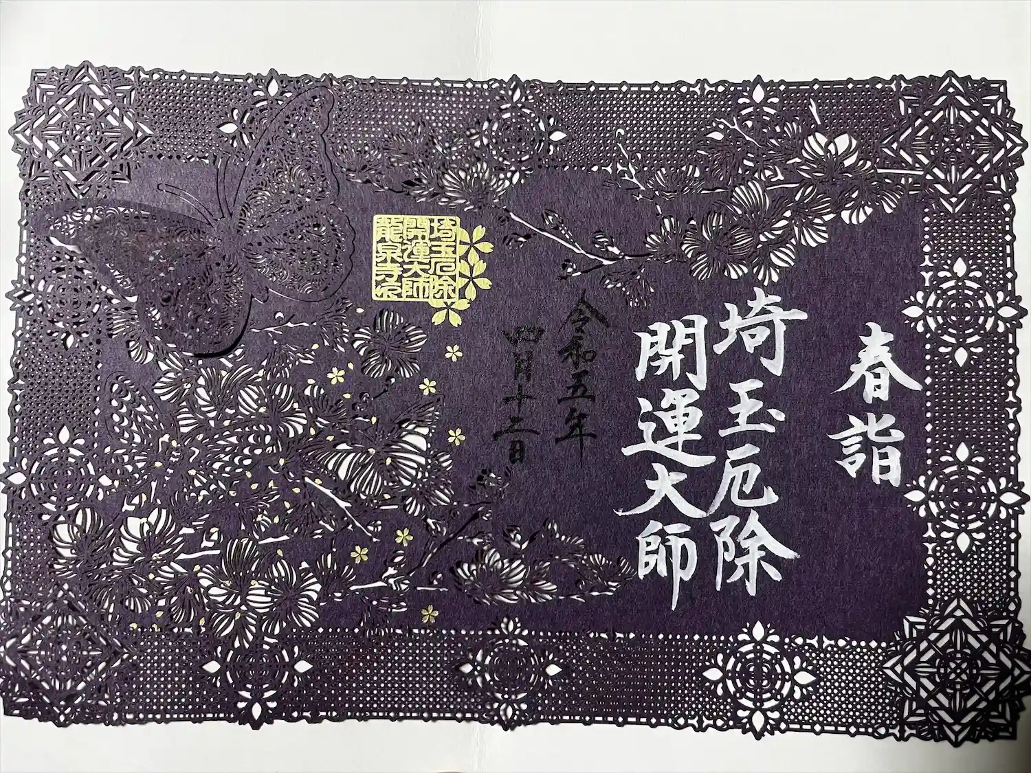 春らしいピンクの切り絵御朱印と、黒の切り絵御朱印そして、法…