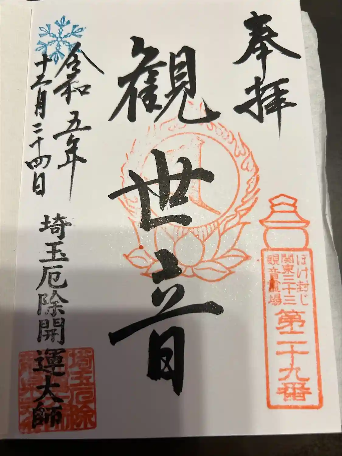 ぼけ封じ関東三十三観音霊場(29番)の御朱印